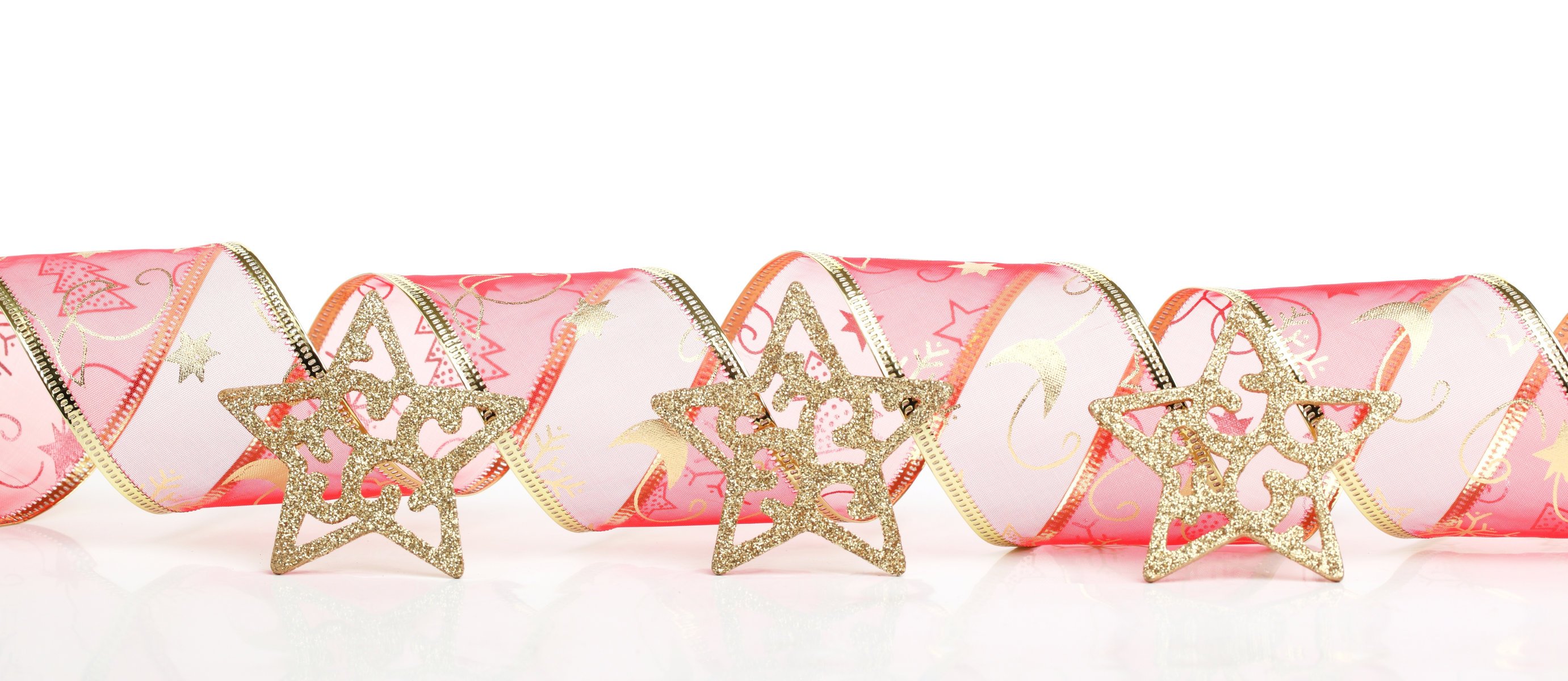 Christmas ribbon decorated with golden stars