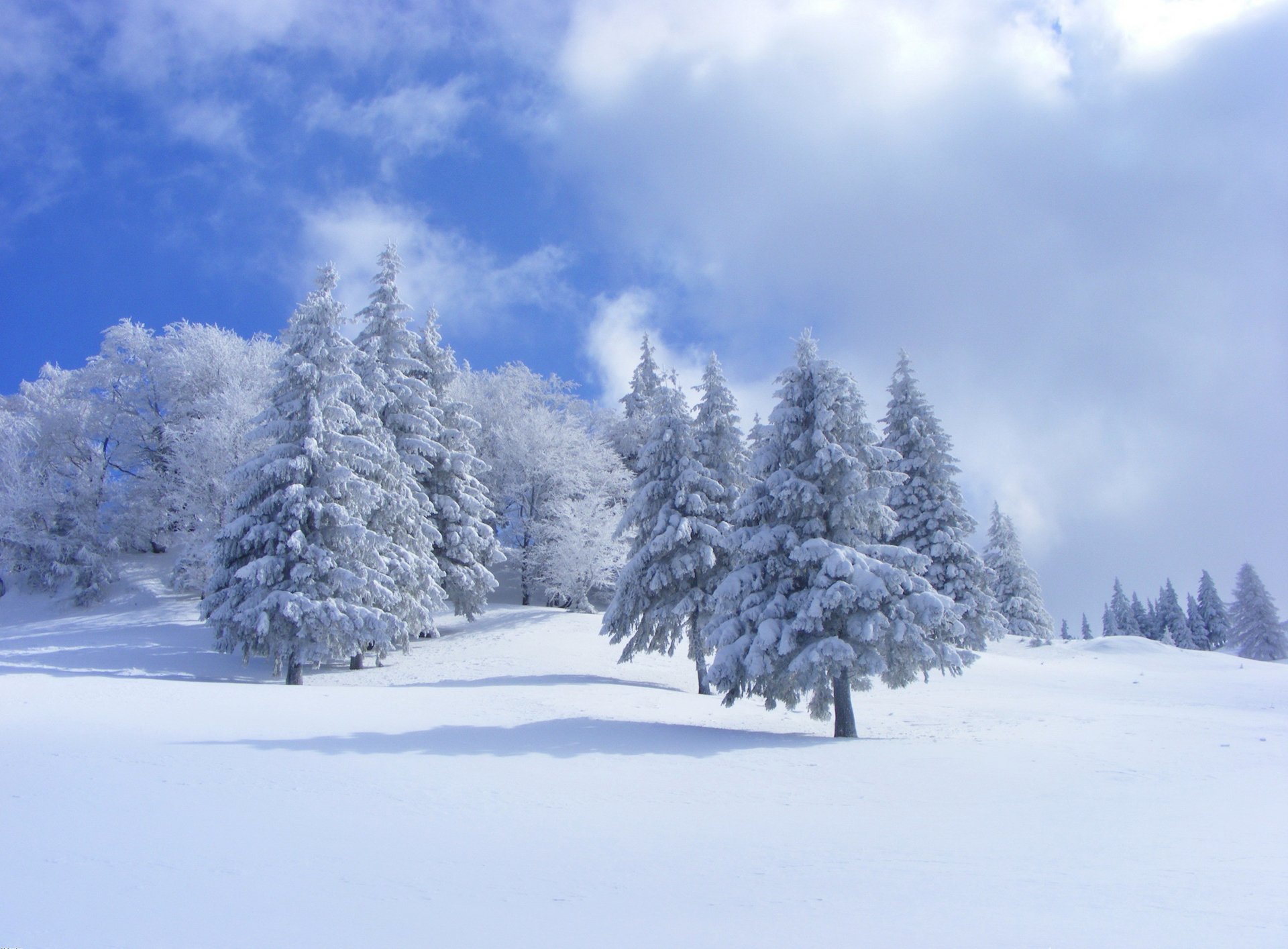 White christmas trees on a snow-covered field in a blizzardWhite Christmas trees on a snow-covered field in a blizzard