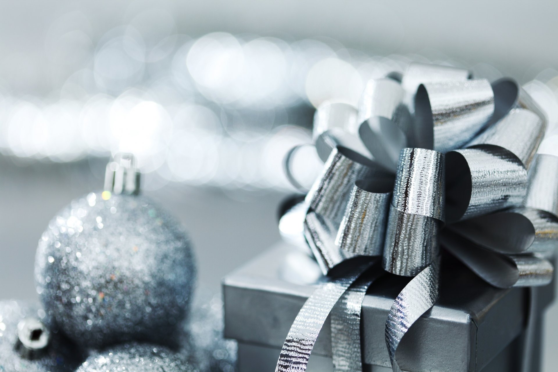 A gift for christmas in a festive package with a golden bowA gift for Christmas in a festive package with a golden bow