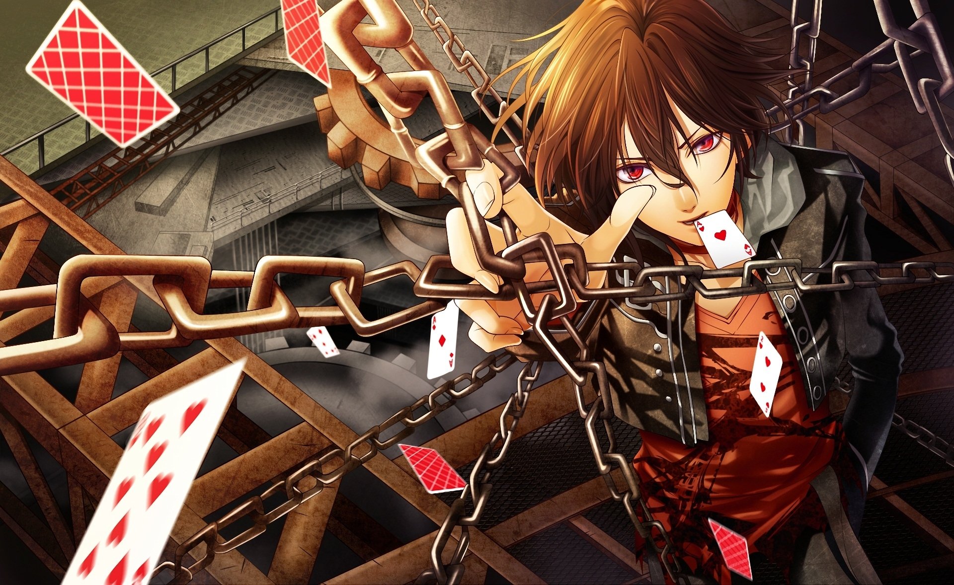 A card with a green-skinned man and an orange snake on an orange background with bloodstains