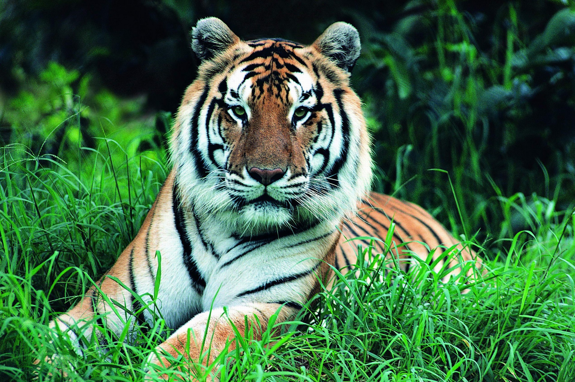 The roar of an angry tiger against the background of natureThe roar of an angry tiger against the background of nature