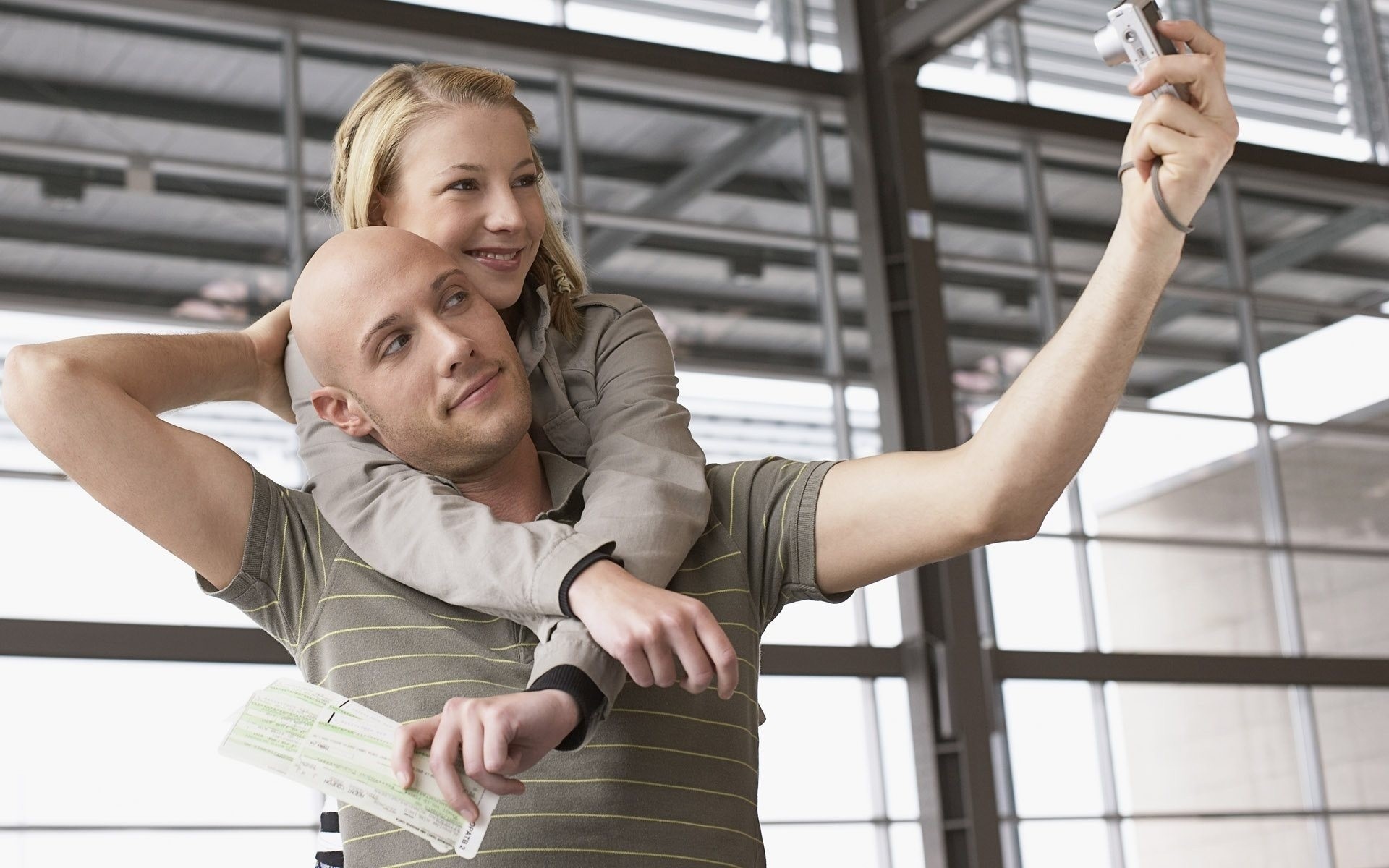 A beautiful couple in an embrace posing for the cameraA beautiful couple in an embrace posing for the camera