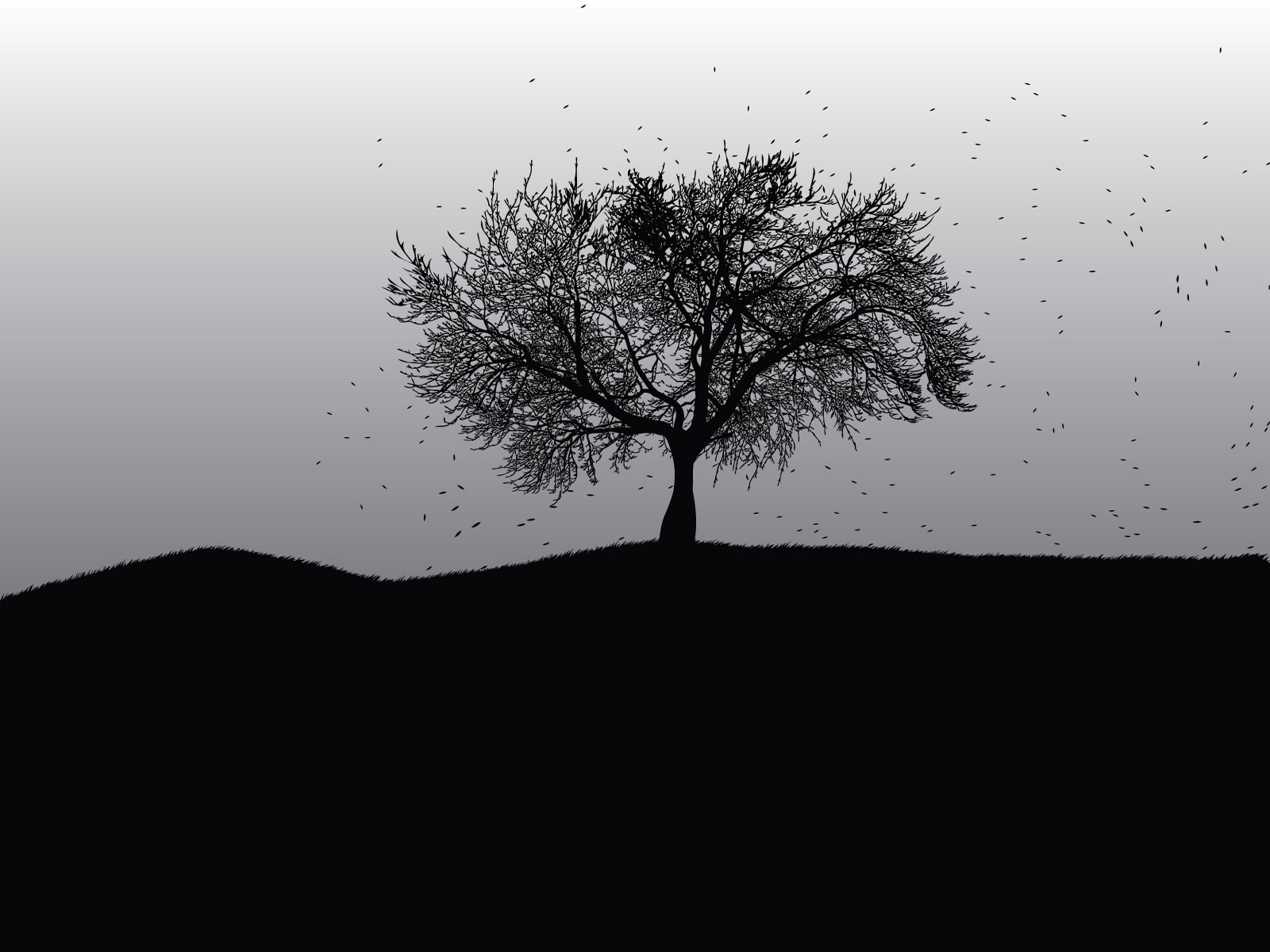 Black and white picture with a lonely tree