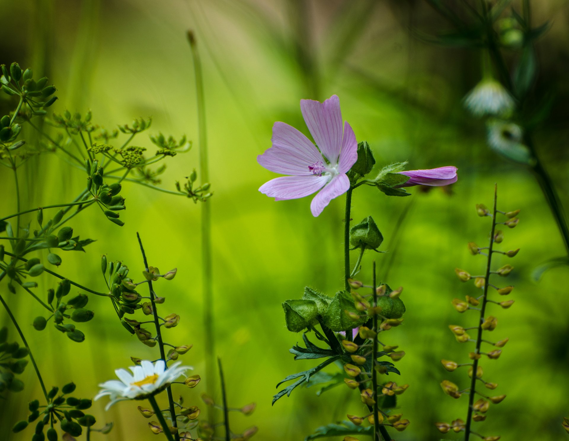 Forest flowers and herbs in macro photography