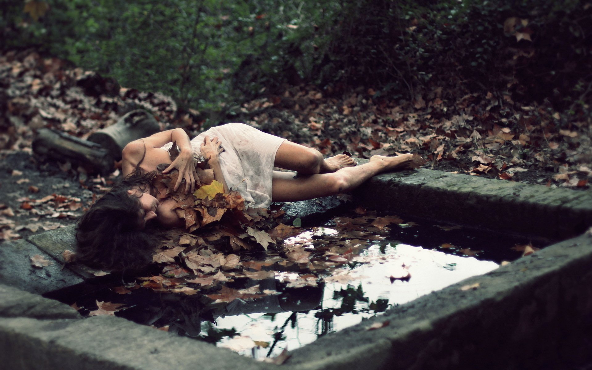 A young girl is lying on the table only in white stockingsA young girl is lying on the table only in white stockings