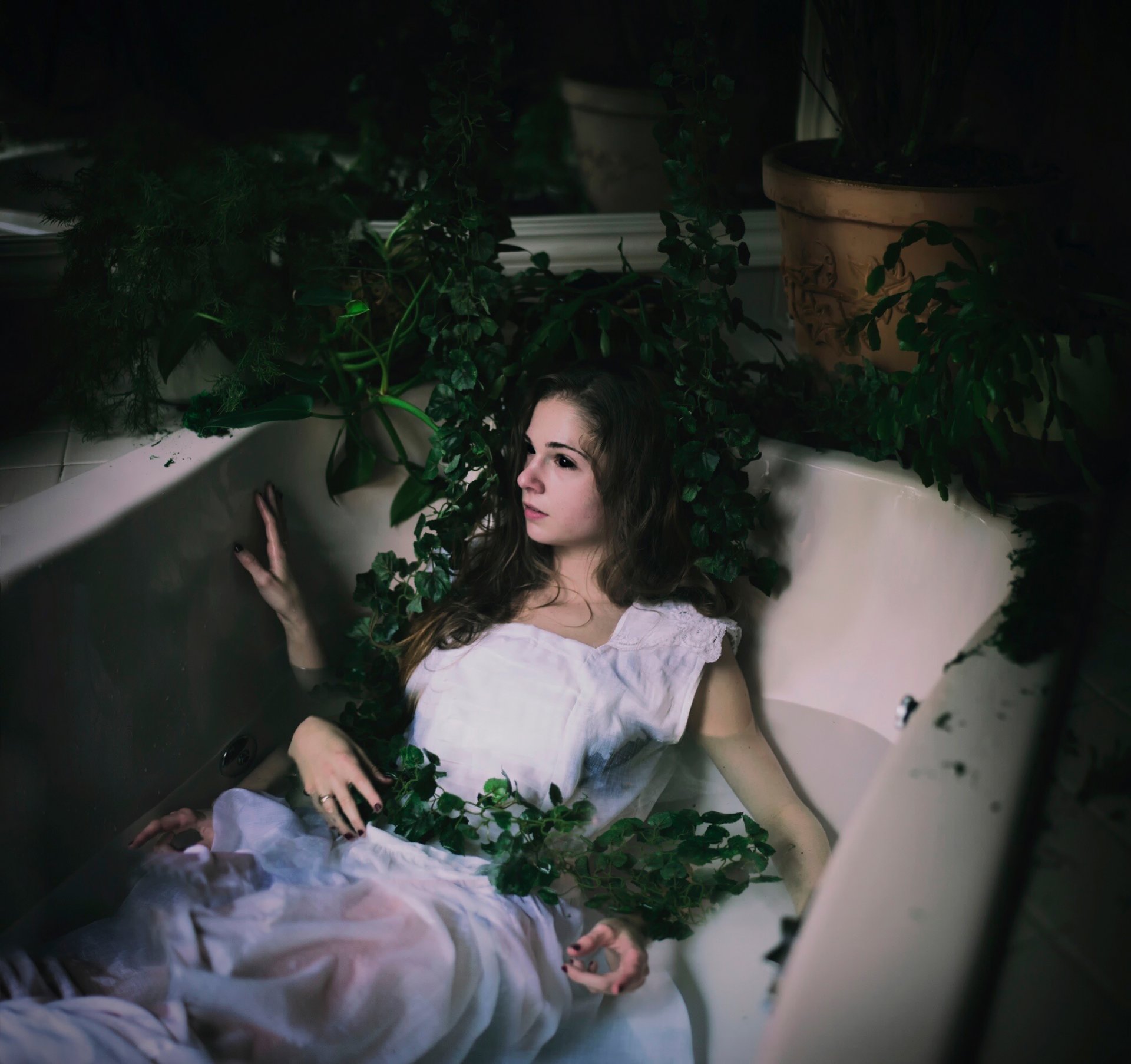 Mythical girl in the bathroom with water