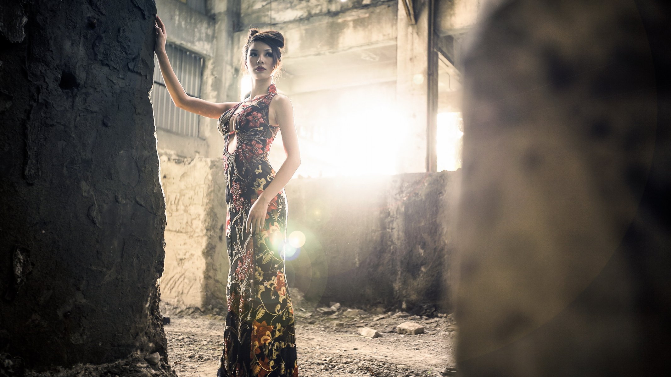 A long-haired girl on the background of a graffiti-painted wallA long-haired girl on the background of a graffiti-painted wall
