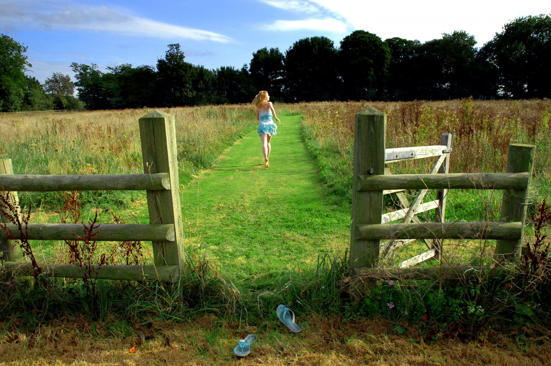 A girl is sitting in the grass with flowers in her handsA girl is sitting in the grass with flowers in her hands