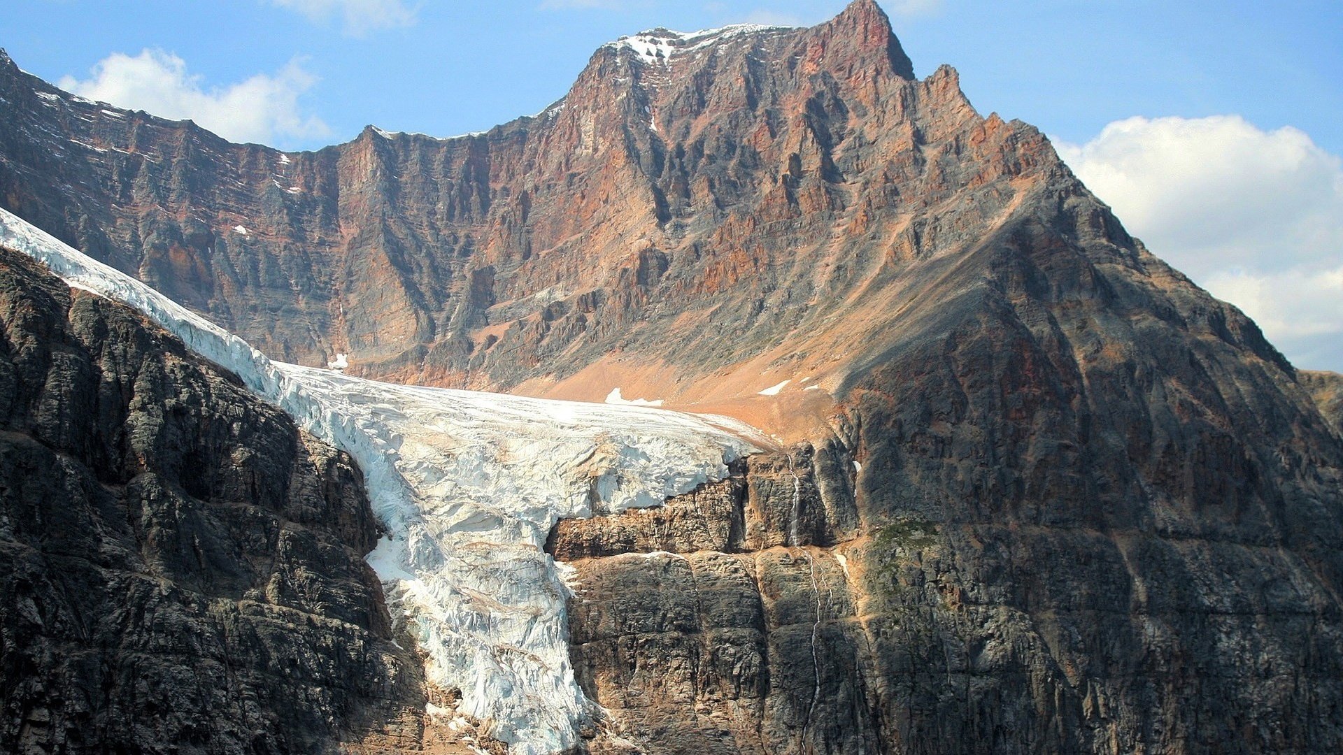 A skeleton in the middle of a lake among a mountain range in summerA skeleton in the middle of a lake among a mountain range in summer