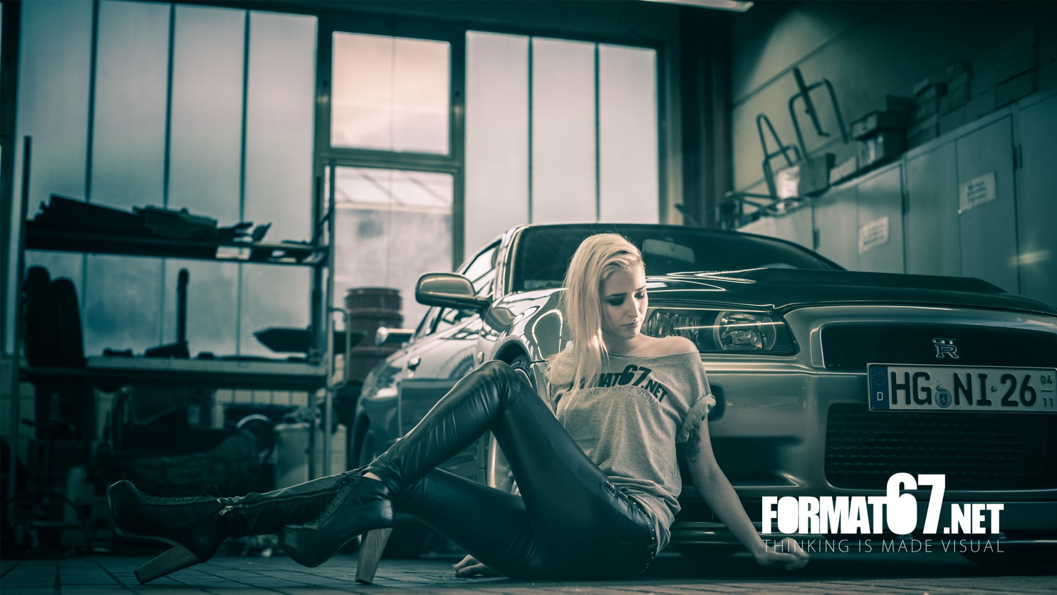 Blue nissan skyline on the background of an old buildingBlue nissan skyline on the background of an old building