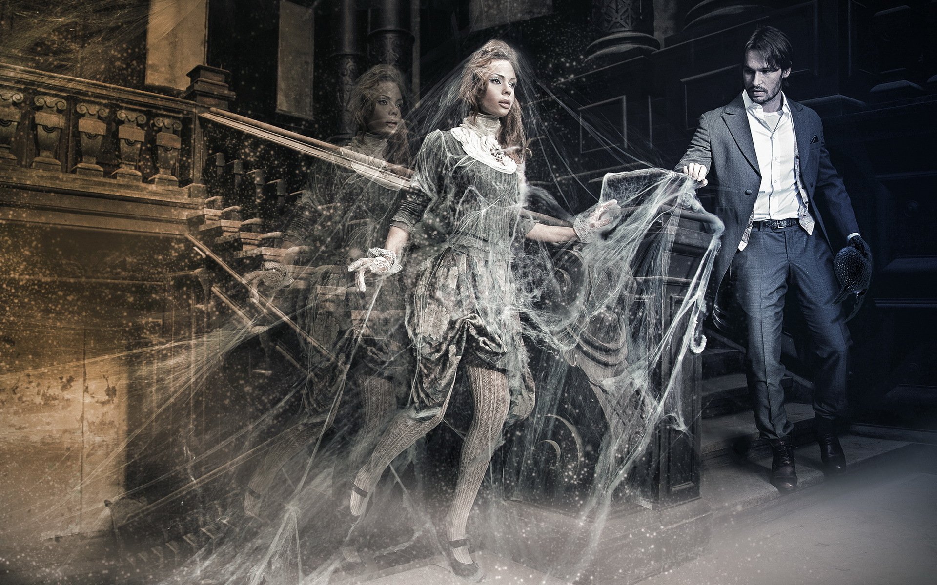 The guy on the bike. silhouette of a girl with a dogThe guy on the bike. Silhouette of a girl with a dog