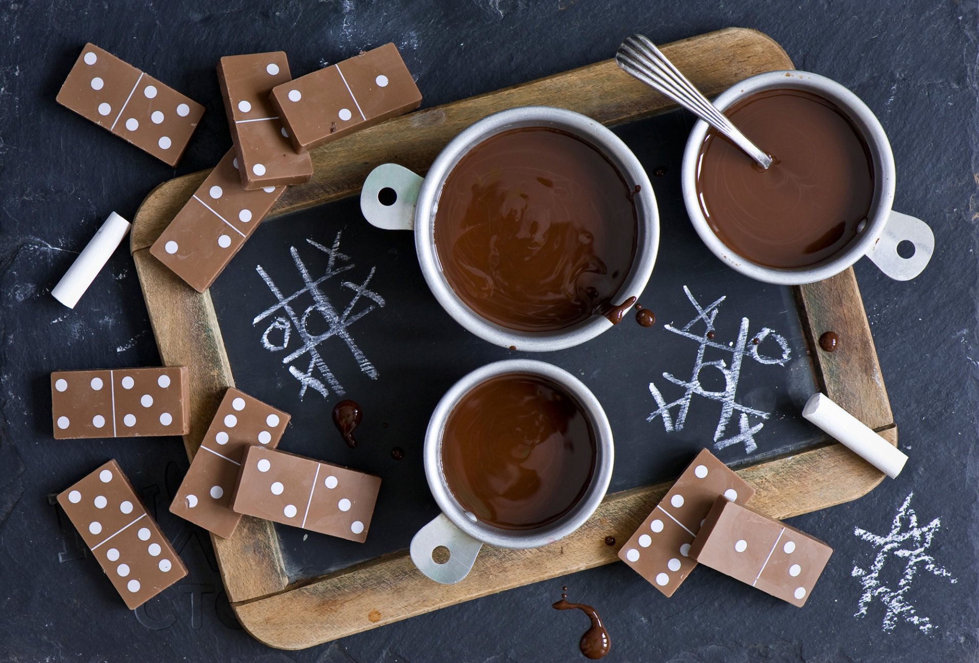 Hot chocolate and dominoes on the table