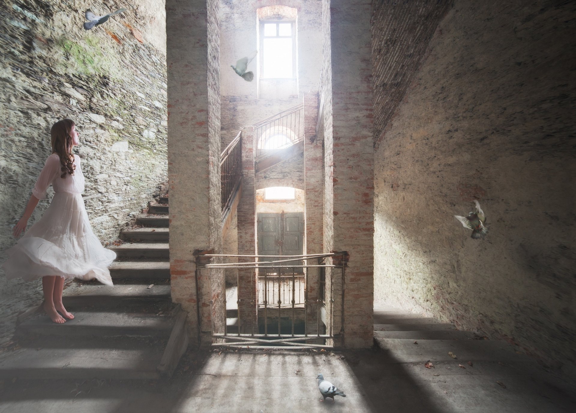 A picture against child abuse in an abandoned houseA picture against child abuse in an abandoned house
