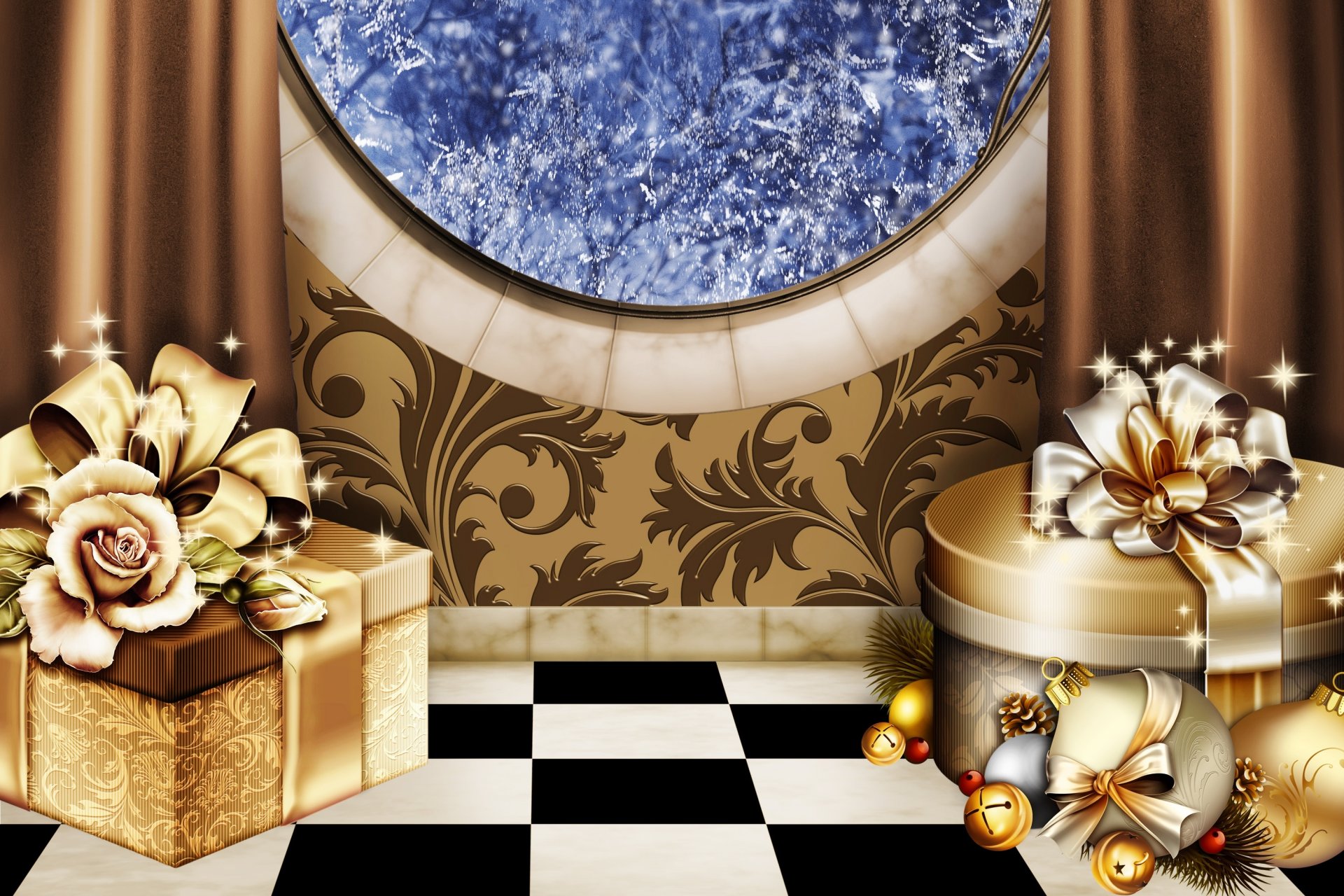 Gift boxes and christmas decorations in golden tonesGift boxes and Christmas decorations in golden tones