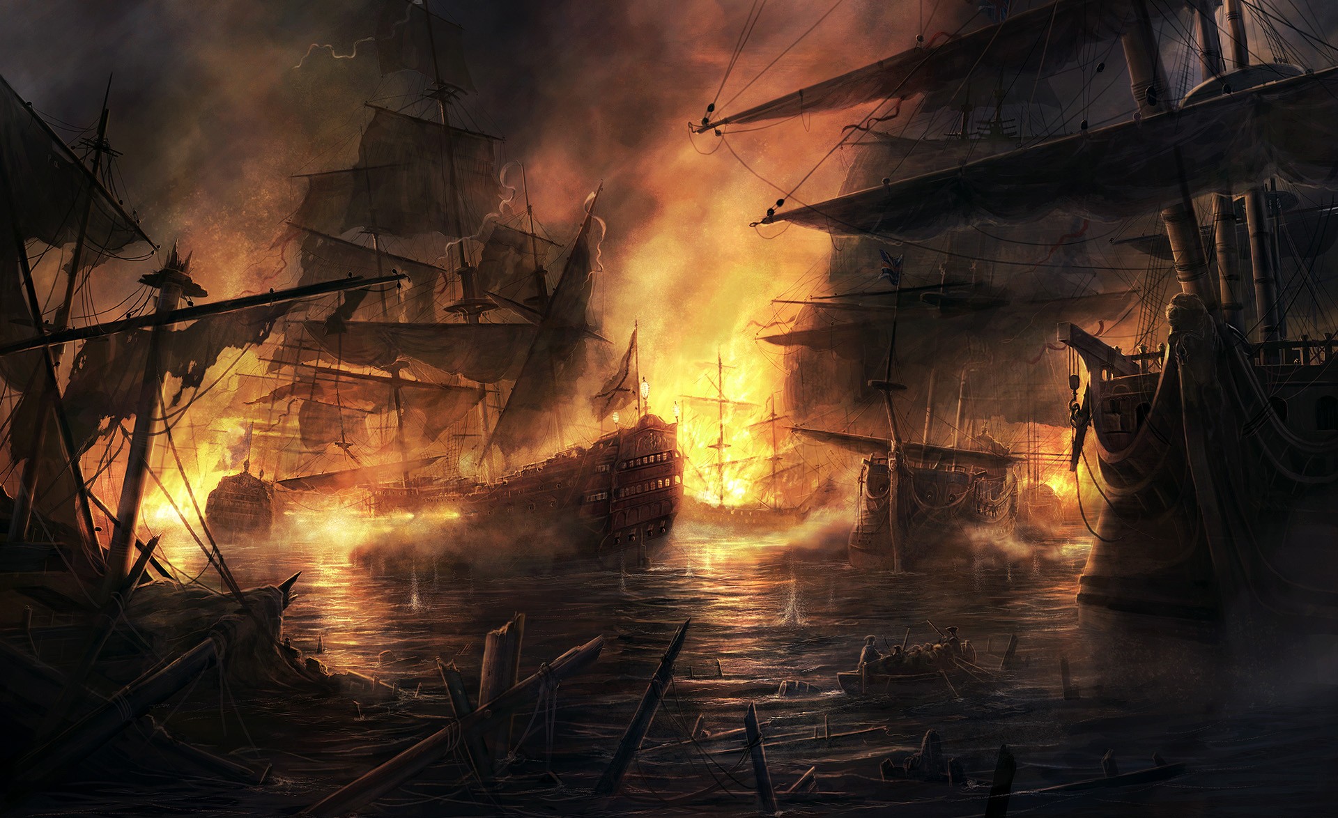 Aircraft carrier on the background of a naval battleAircraft carrier on the background of a naval battle