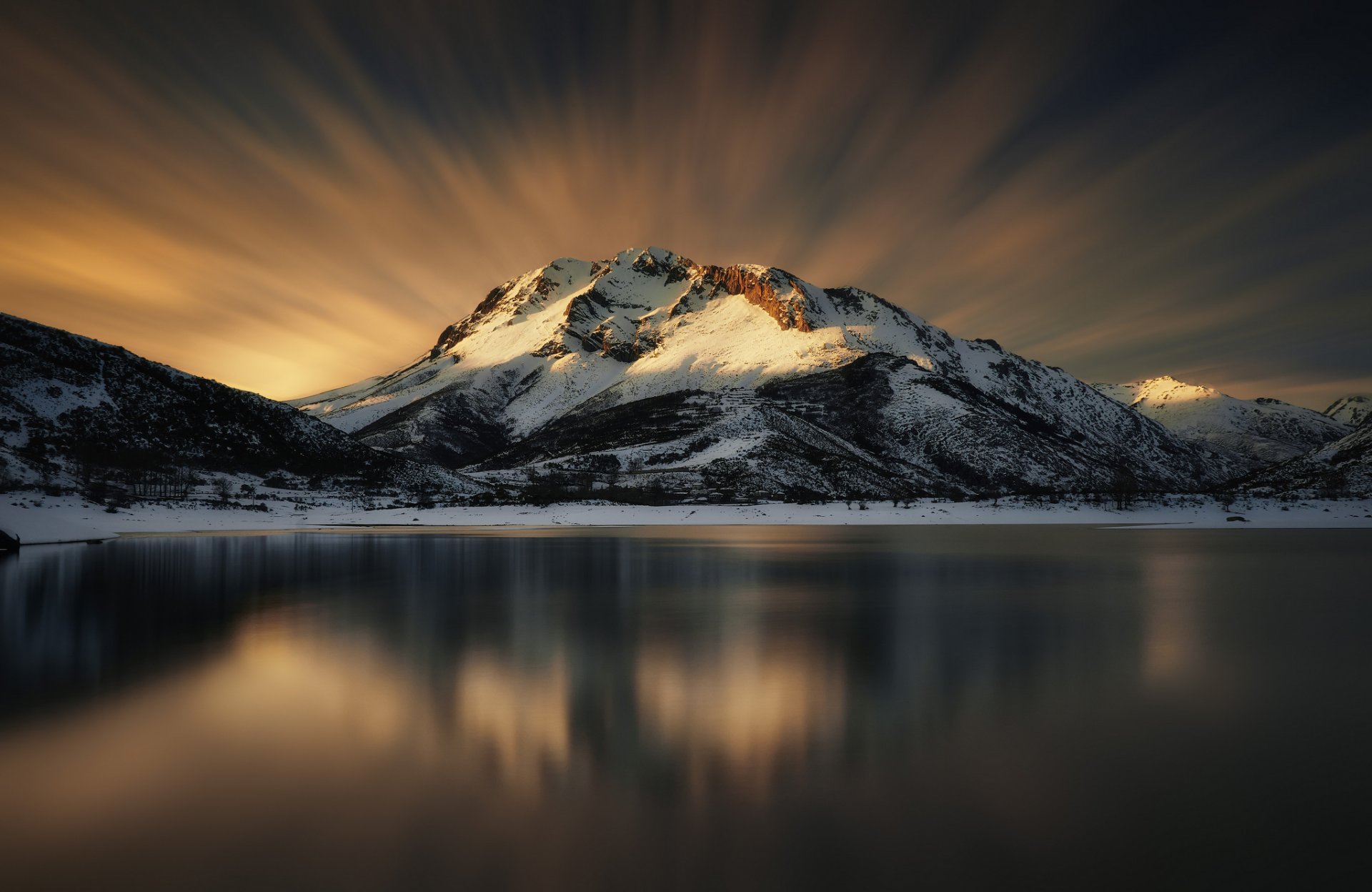 Lake with a lighthouse in Michigan on the background of a bright sunset