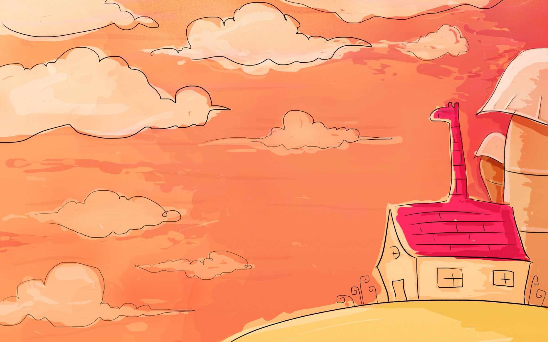 Drawing of a house with a roof in the form of a giraffeDrawing of a house with a roof in the form of a giraffe