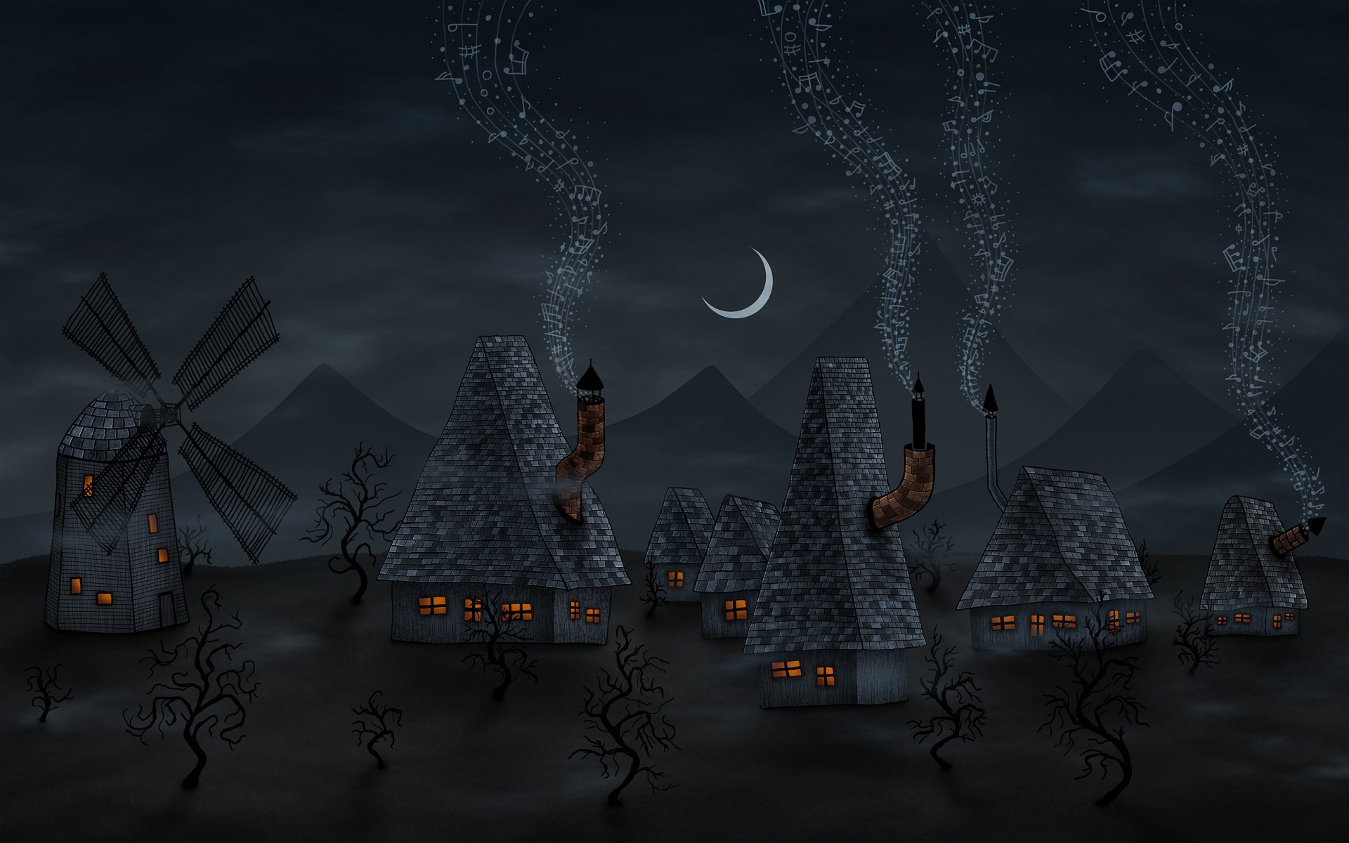 Evening town of little gnomes