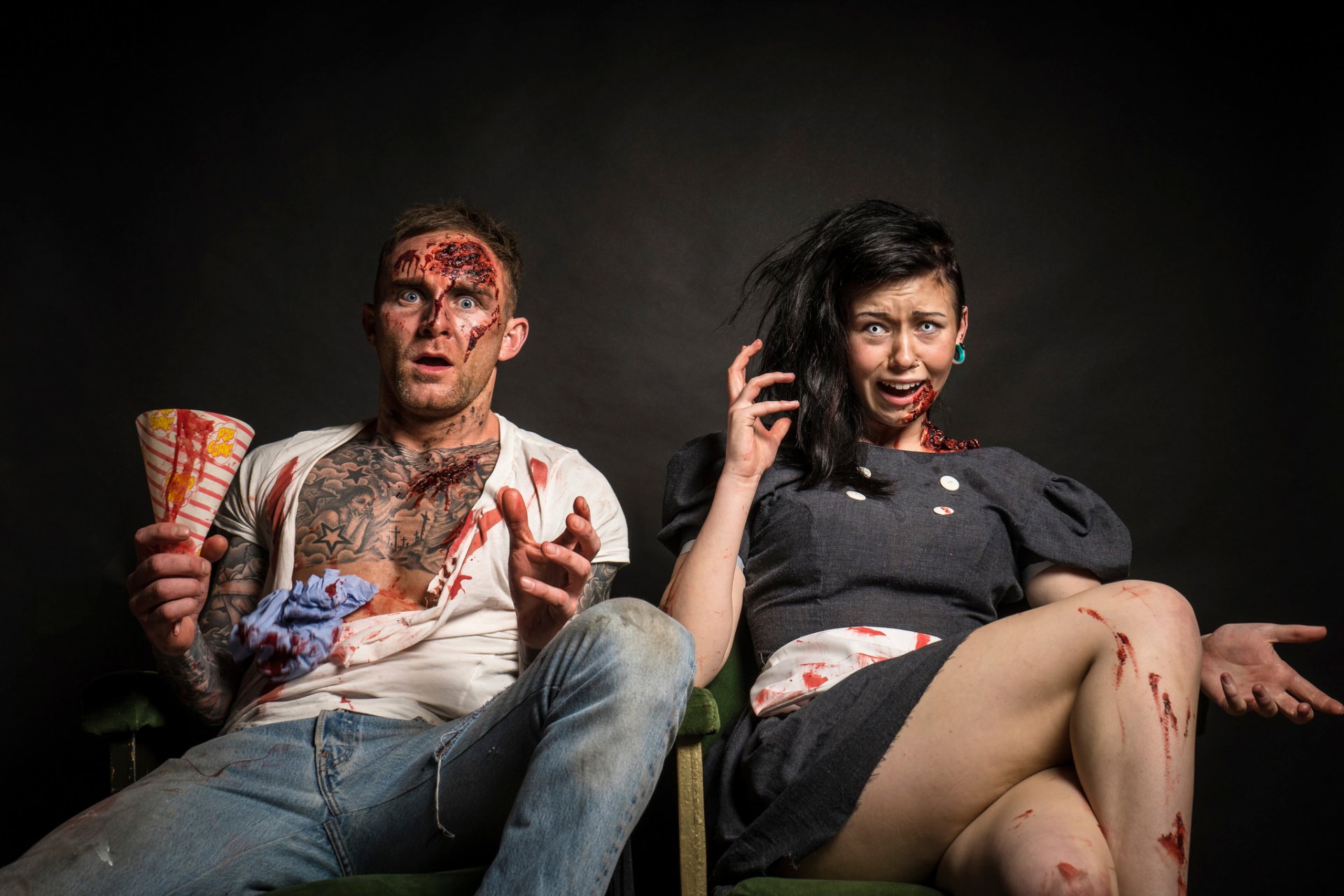 A guy and a girl in funny makeup like in a horror movieA guy and a girl in funny makeup like in a horror movie
