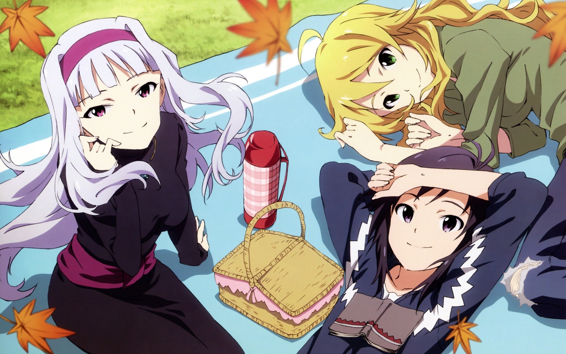 Anime, three friends on a picnic