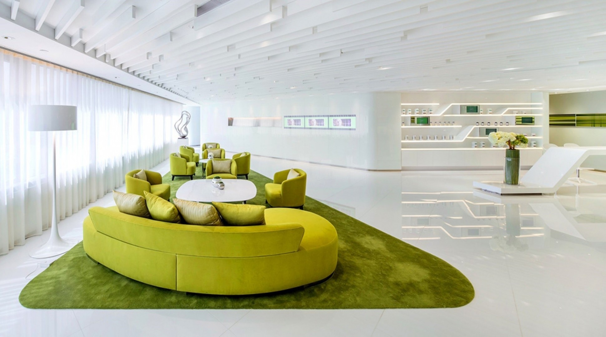 The living room is made in a white and green styleThe living room is made in a white and green style