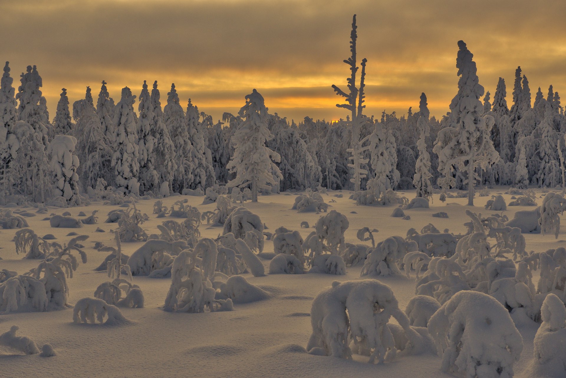 Winter morning in a snowy forest