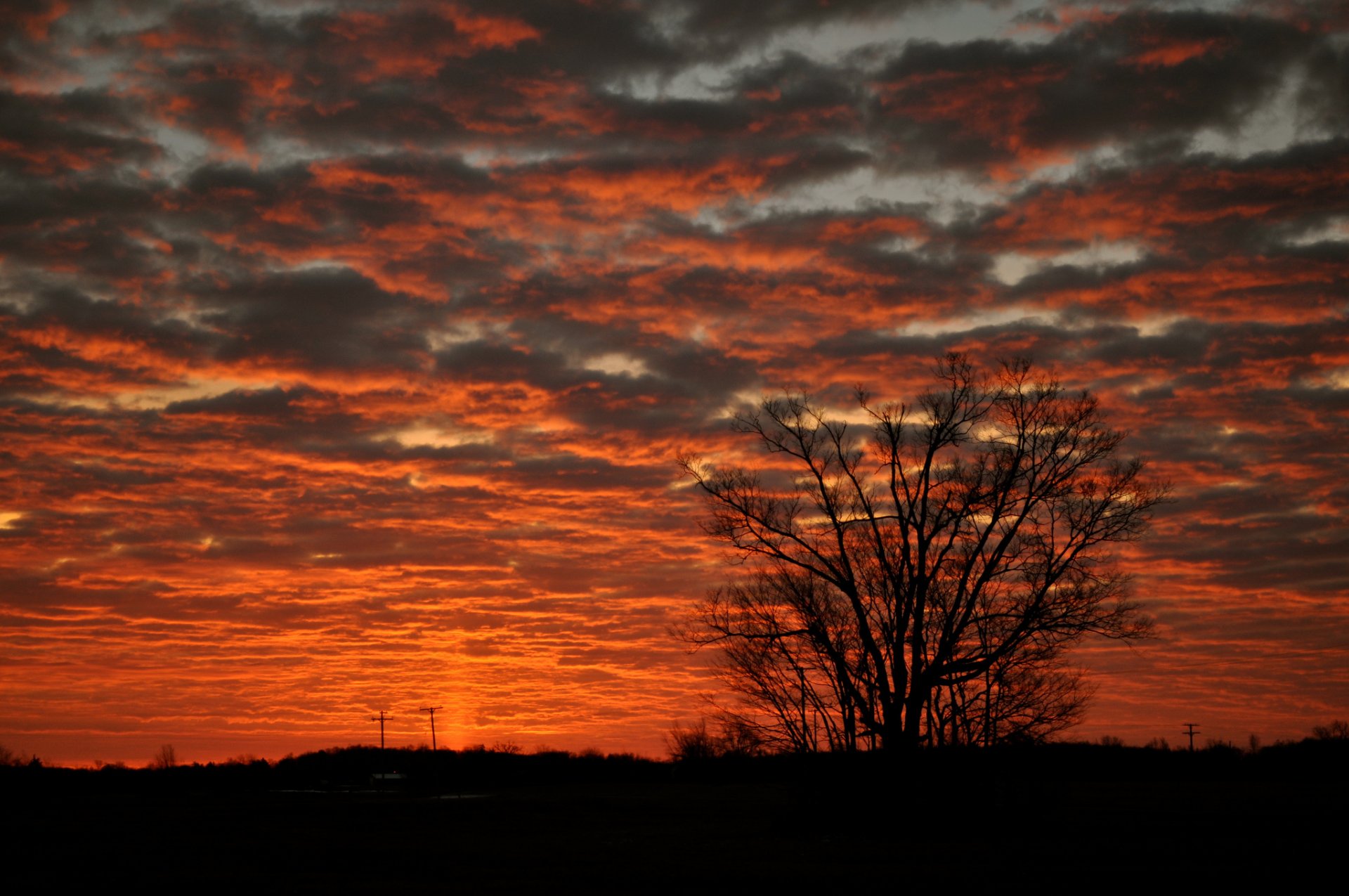 Silhouette of a tree and grass against a red sunsetSilhouette of a tree and grass against a red sunset
