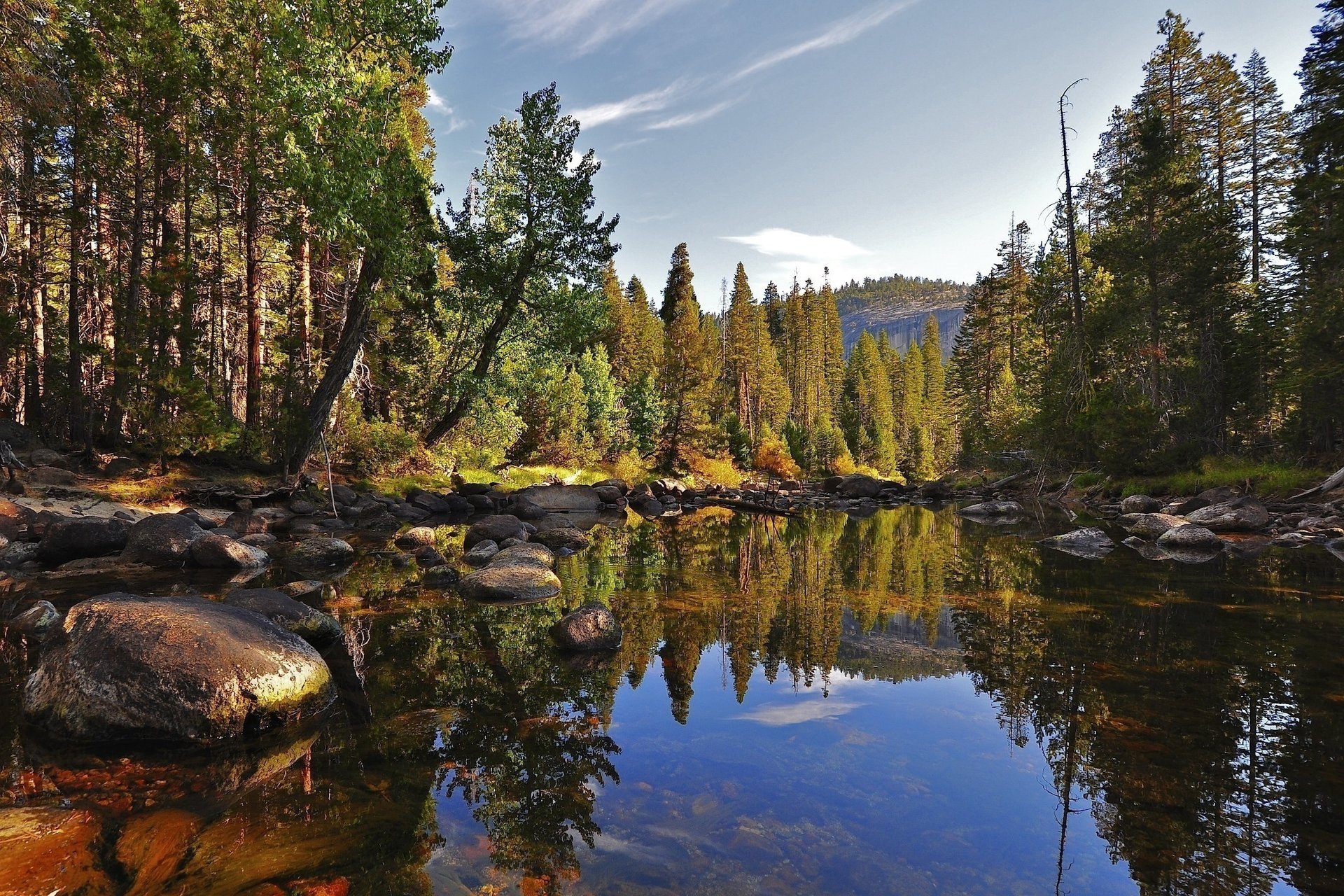 The sun illuminates the trees, the morning rays in natureThe sun illuminates the trees, the morning rays in nature