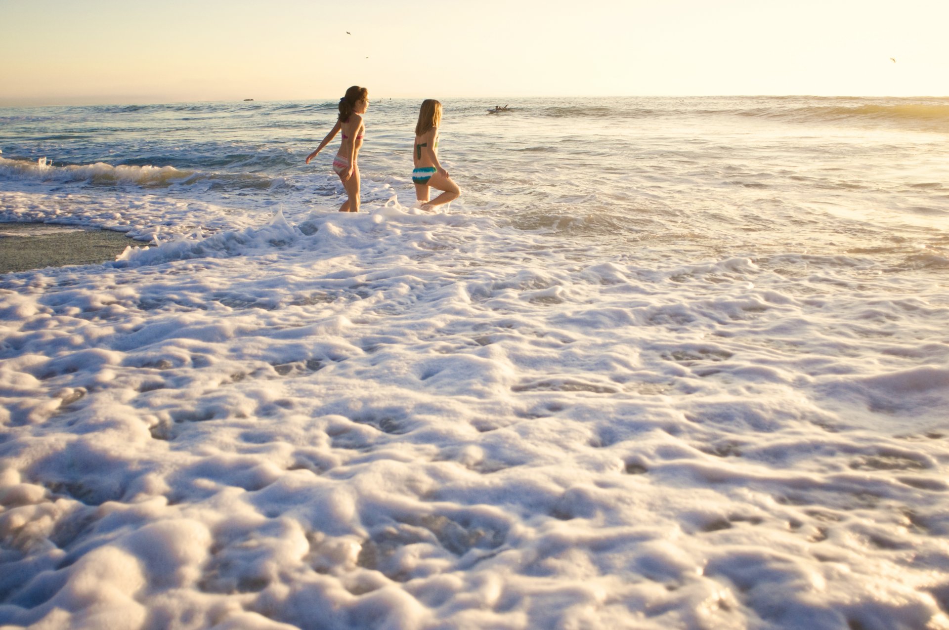 Girls running around the ocean