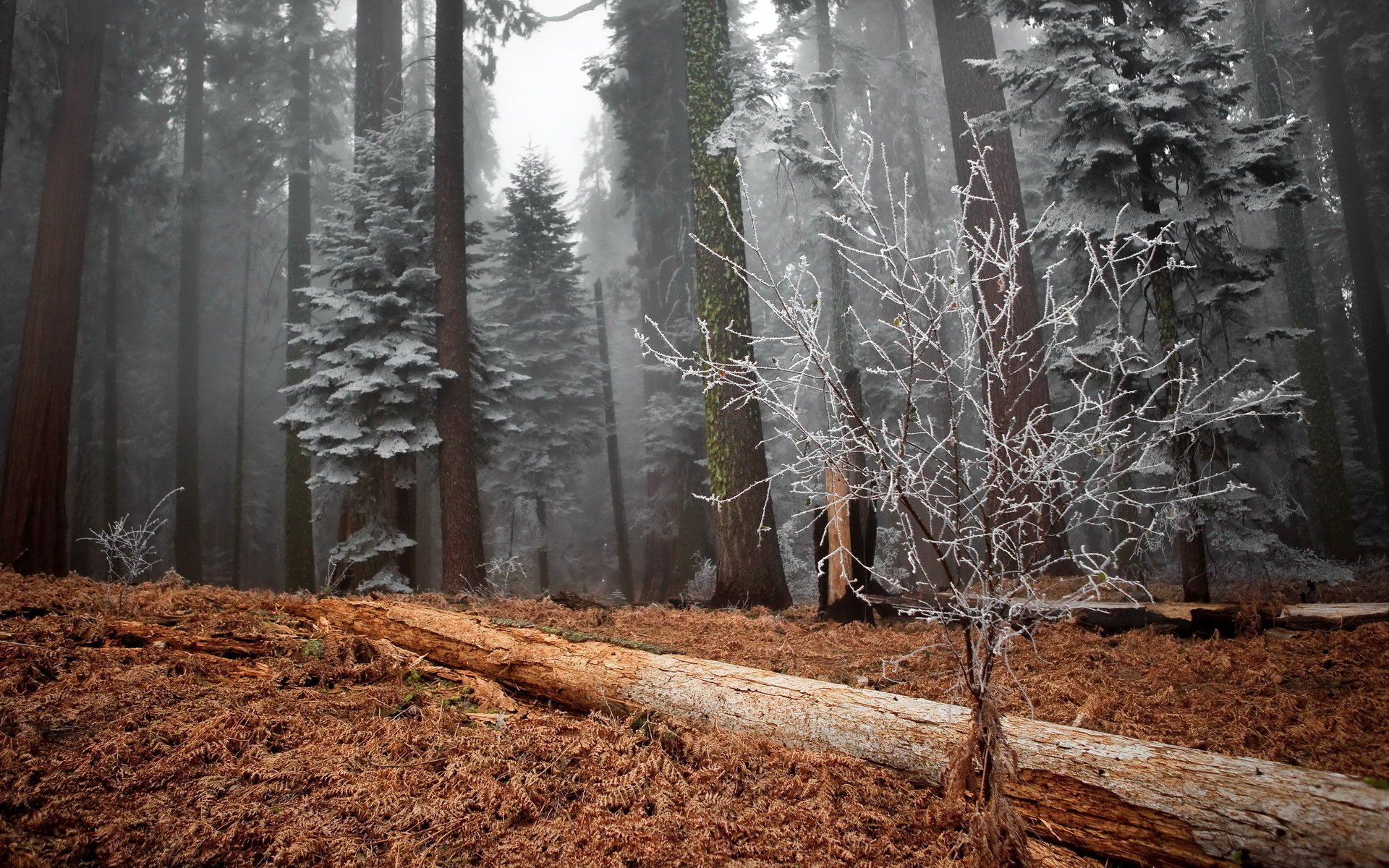 In winter, the trees in the forest were covered with frostIn winter, the trees in the forest were covered with frost