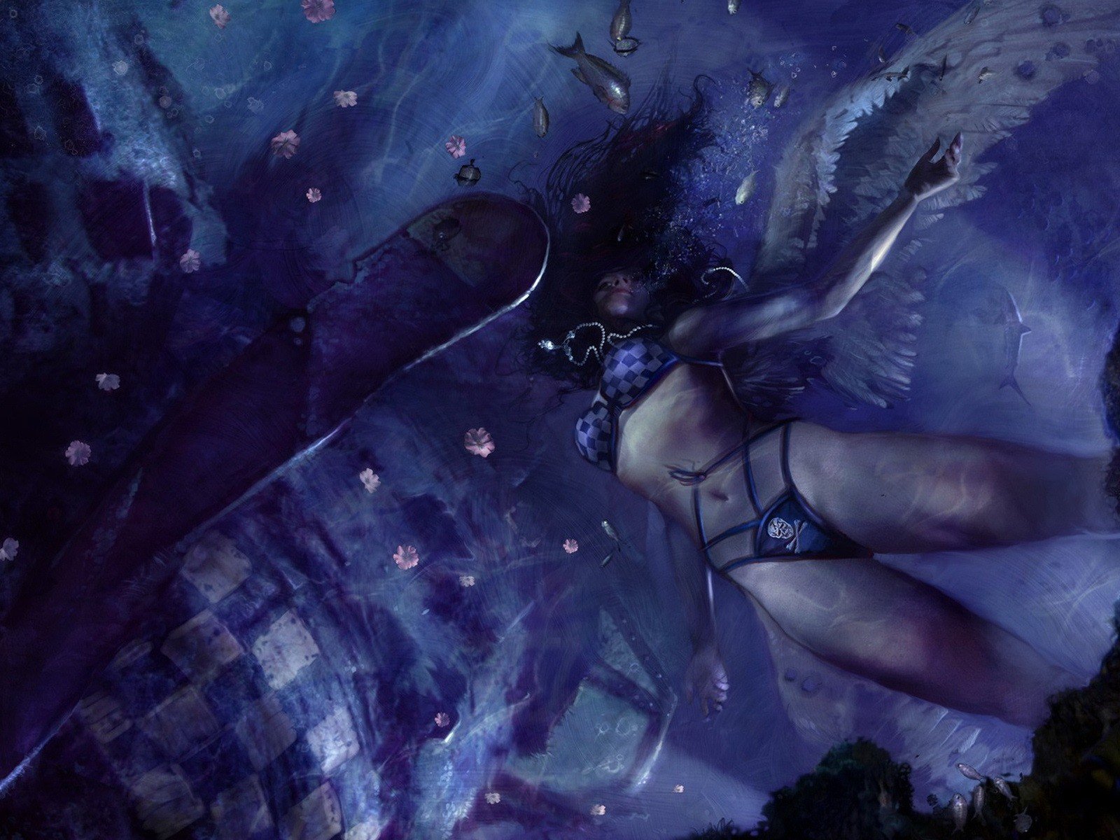 A girl with wings in underwear on a blue backgroundA girl with wings in underwear on a blue background