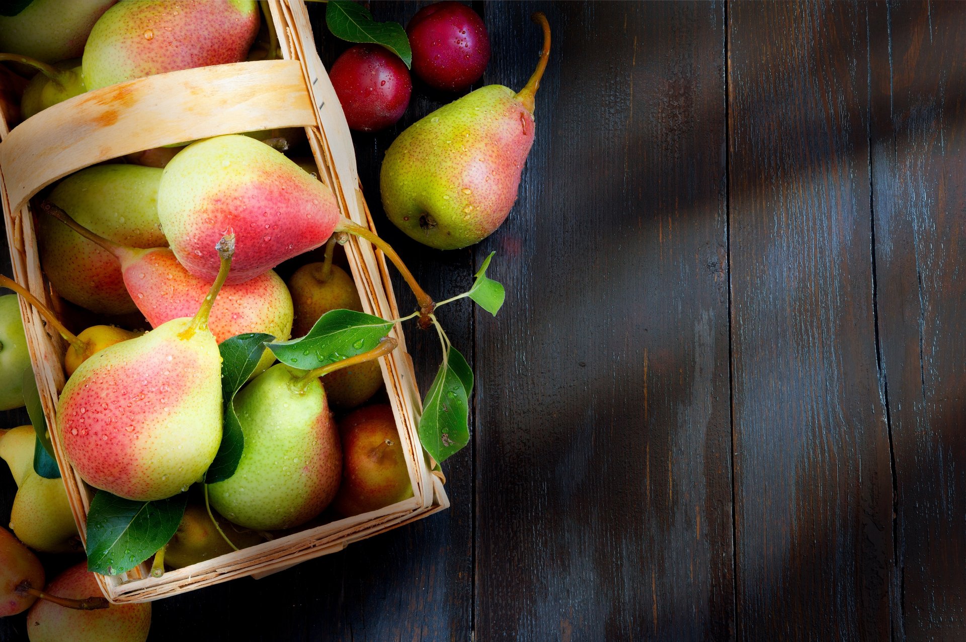 Photos of fruits grapes, strawberries, lemon, pear and apple
