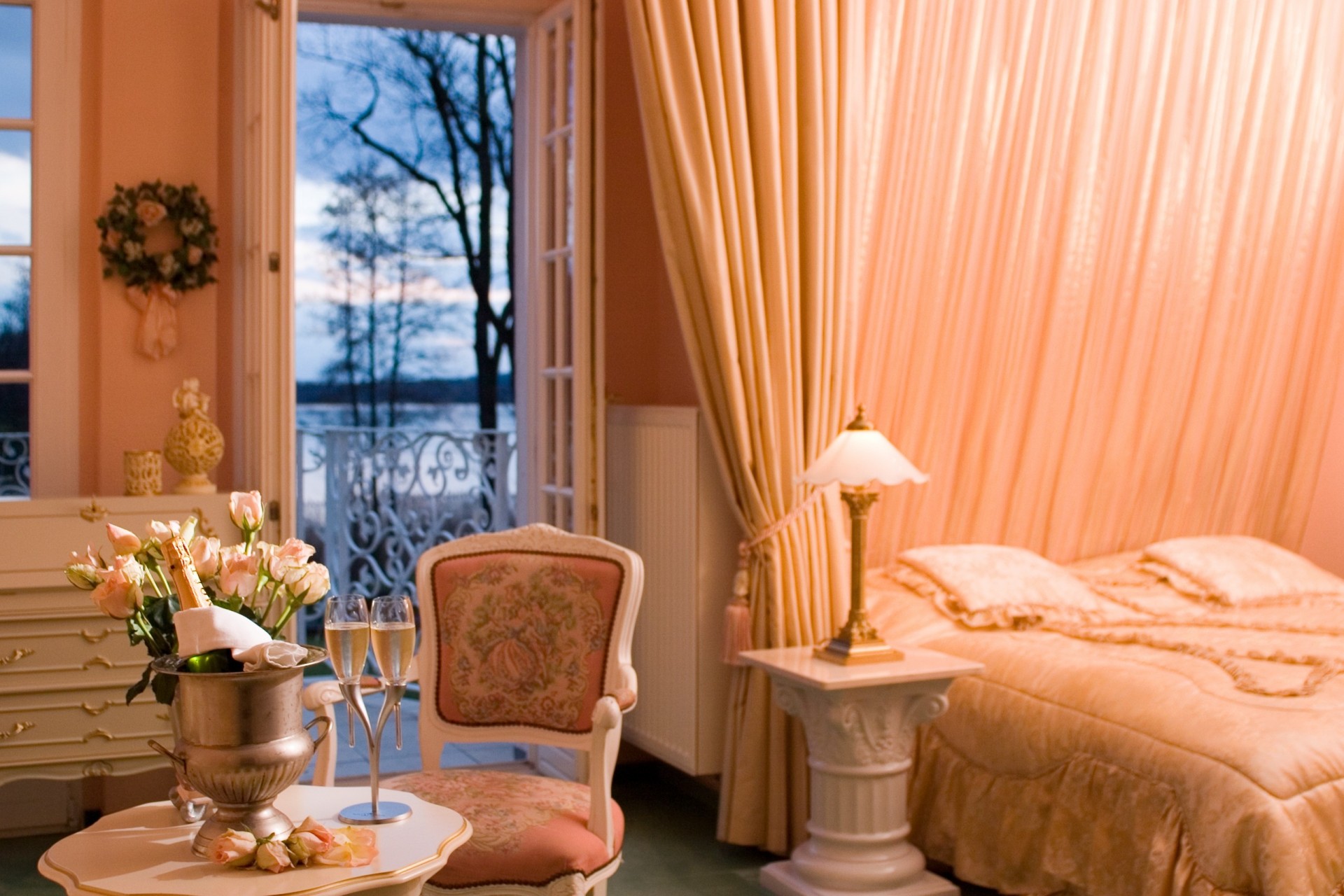 Bedroom in peach tones classicism style