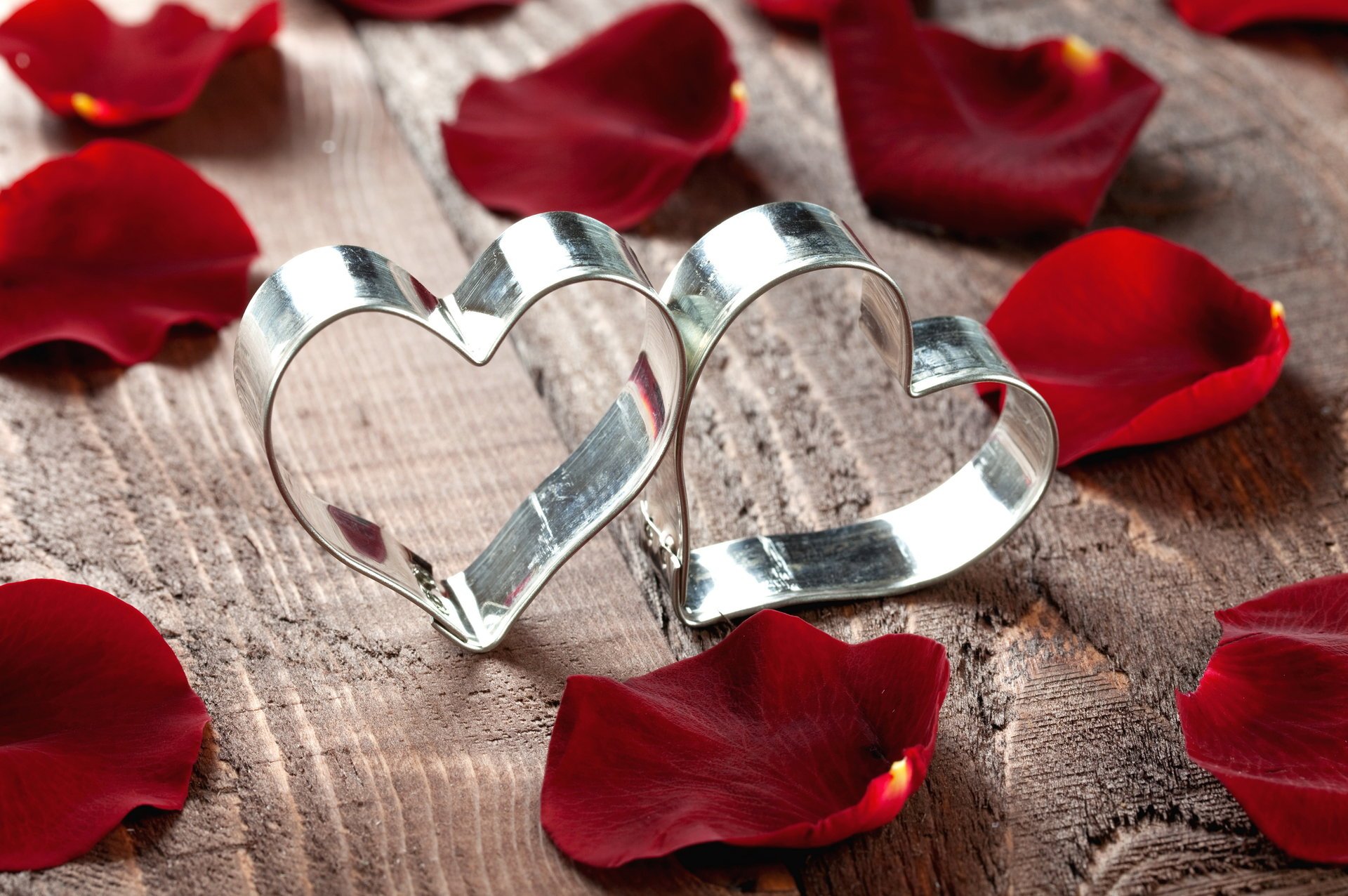 A heart-shaped pillow, a bouquet of roses and a small box decorated with a ribbonA heart-shaped pillow, a bouquet of roses and a small box decorated with a ribbon