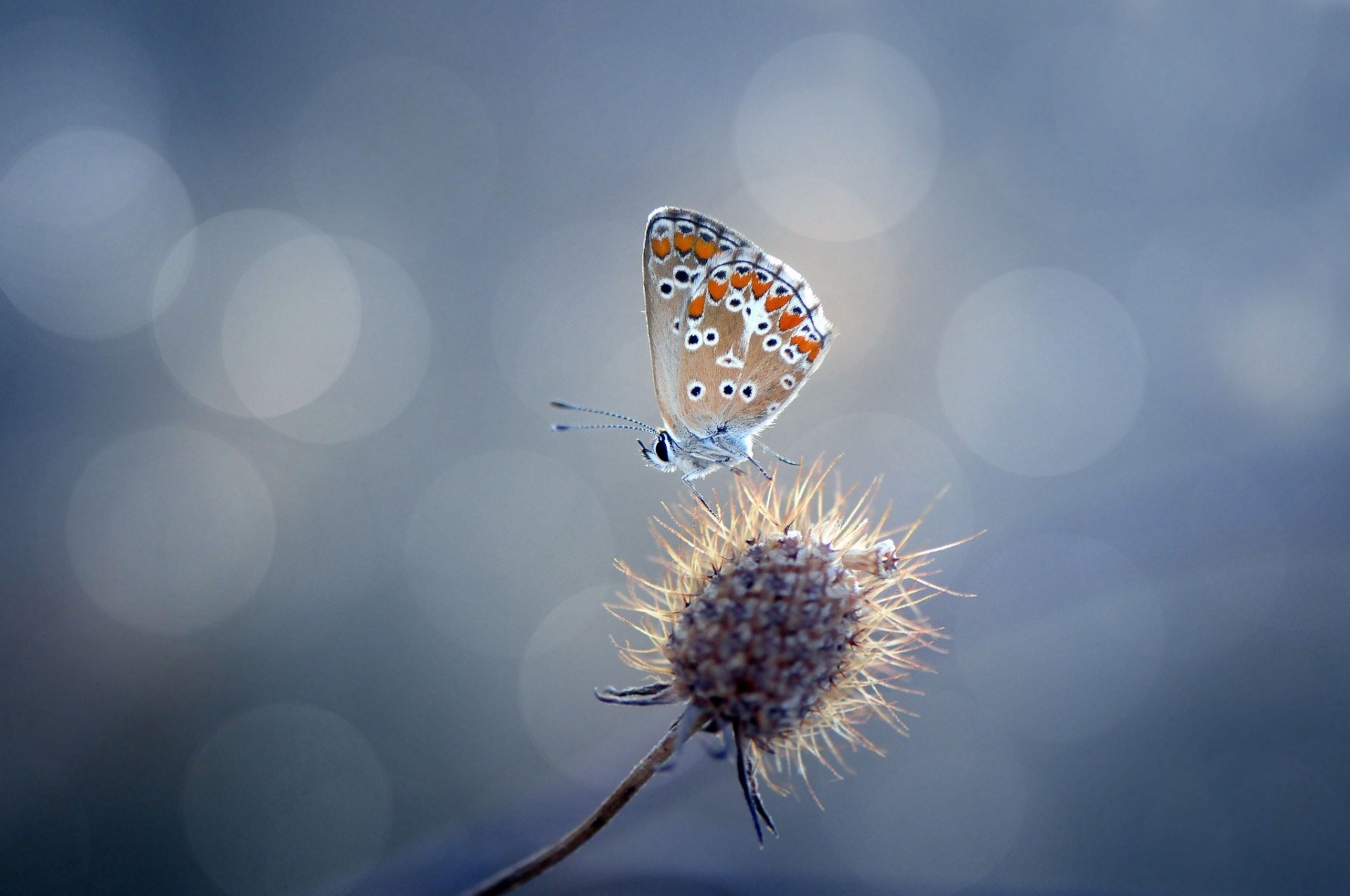 Butterfly on thorns and beautiful highlights in the backgroundButterfly on thorns and beautiful highlights in the background