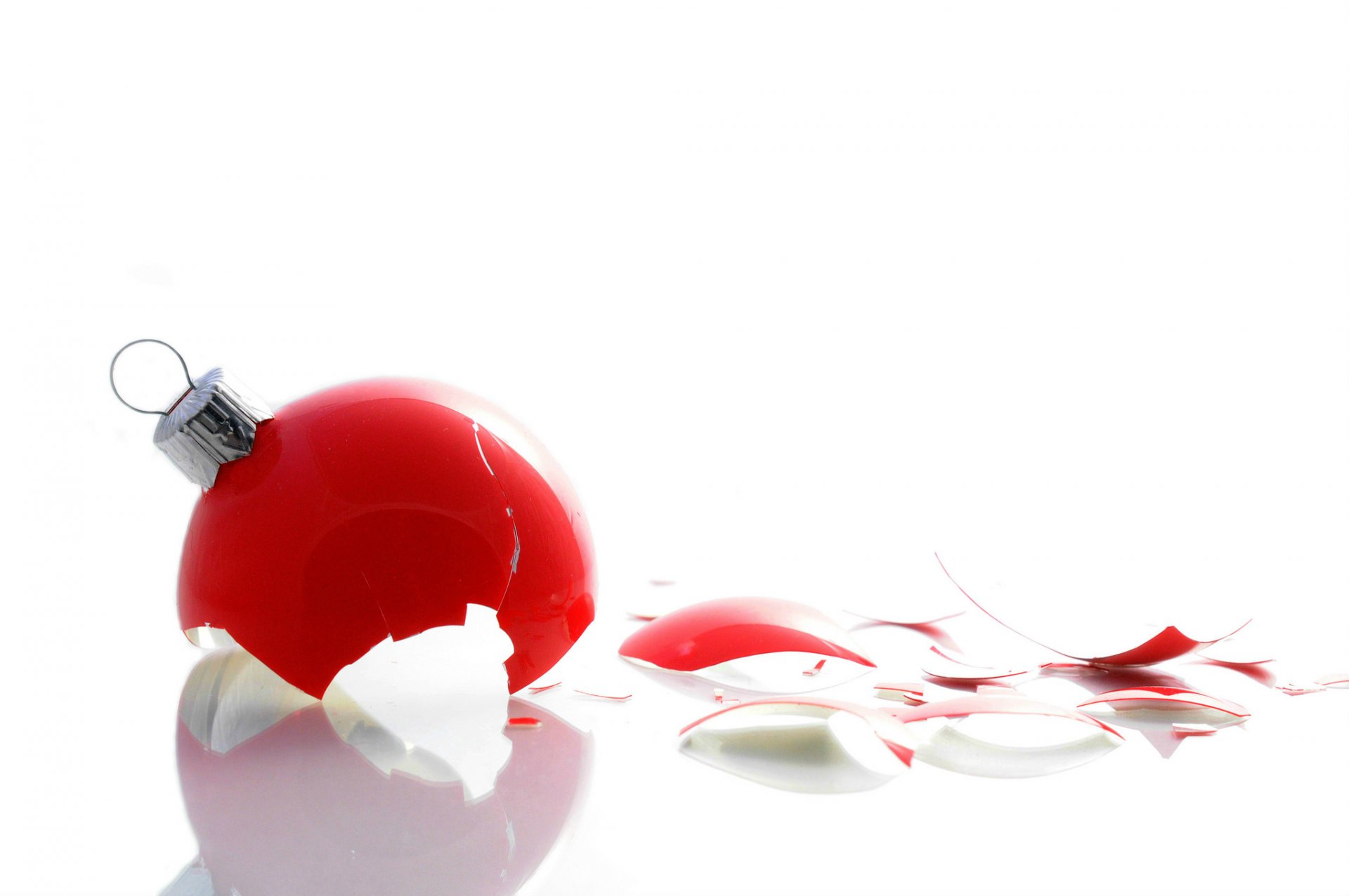 A broken red christmas tree toy on a white backgroundA broken red Christmas tree toy on a white background