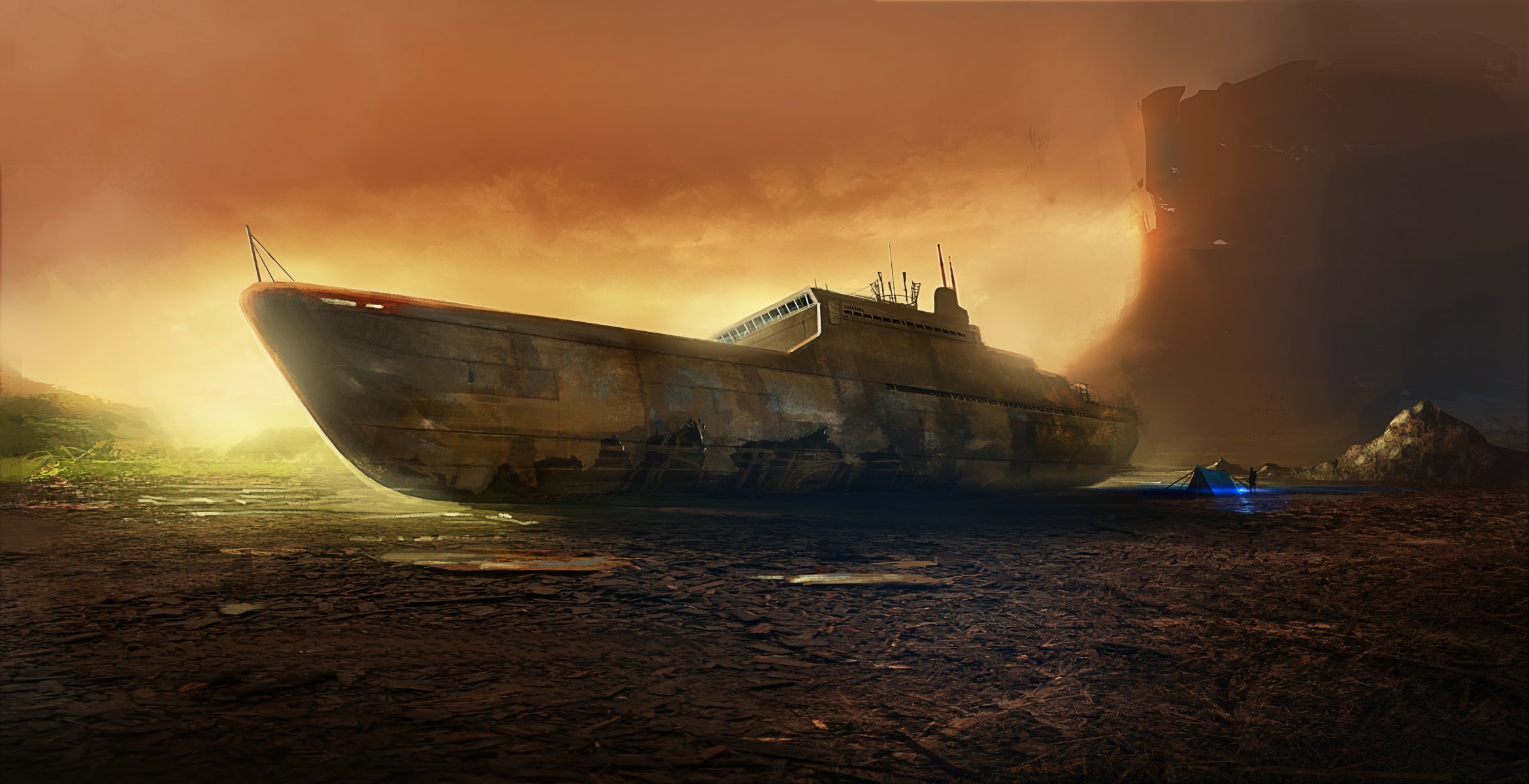 The art of the post-apocalypse. A crashed plane and a tower on the background