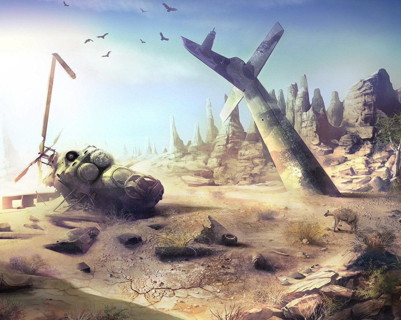 Lonely cherry blossoms among post-apocalyptic wreckage