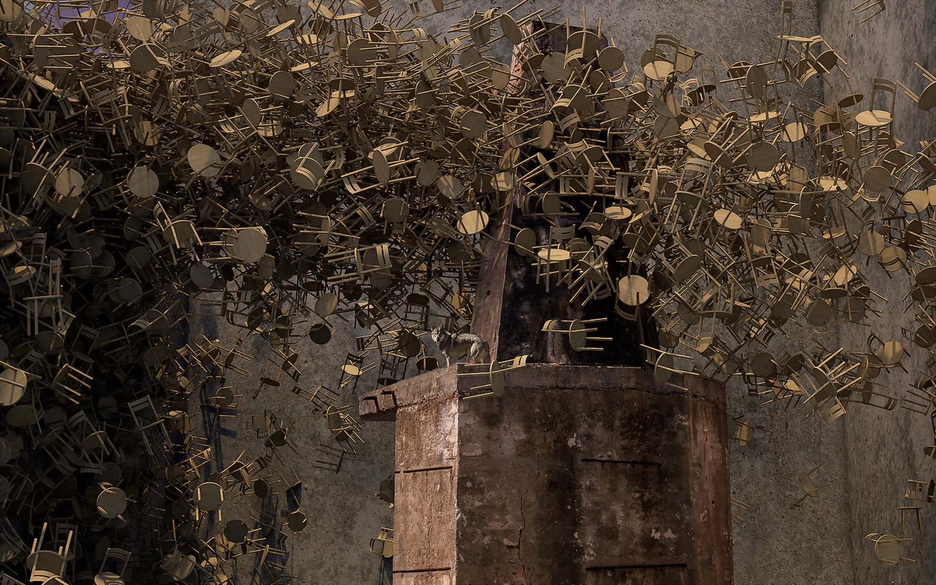 An abstract painting depicting chairs. an unusual picture with a lot of chairsAn abstract painting depicting chairs. An unusual picture with a lot of chairs