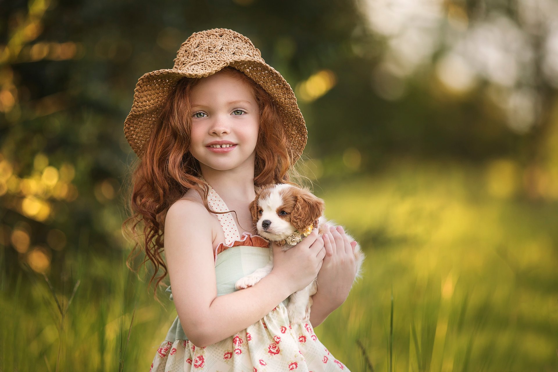 Red-haired girl against the background of the sun in the fieldRed-haired girl against the background of the sun in the field