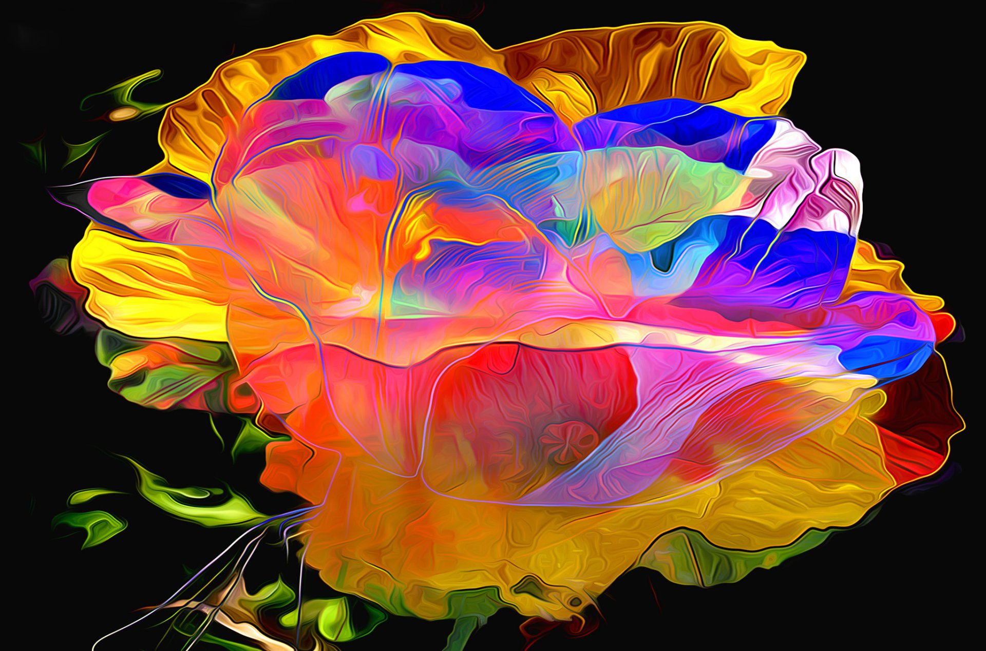 Glowing petals with highlights on a black background
