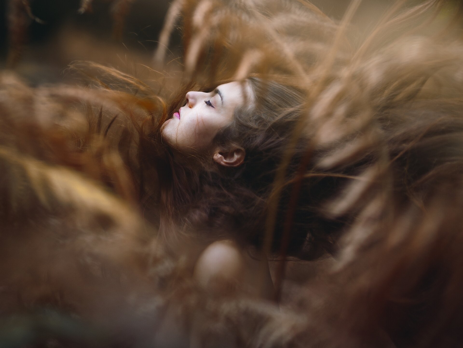 A red-haired girl in a white and yellow dress with yellow balls on a field with tall yellow flowersA red-haired girl in a white and yellow dress with yellow balls on a field with tall yellow flowers