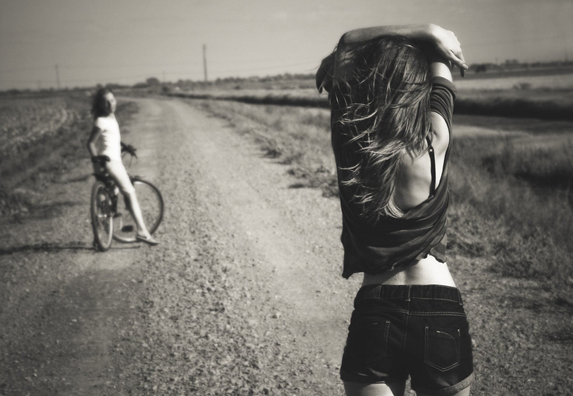 Black and white photo of a girl in summer in shortsBlack and white photo of a girl in summer in shorts