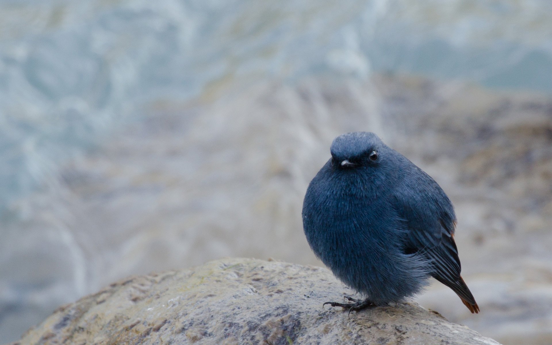 A bird sitting on a rock like a bun