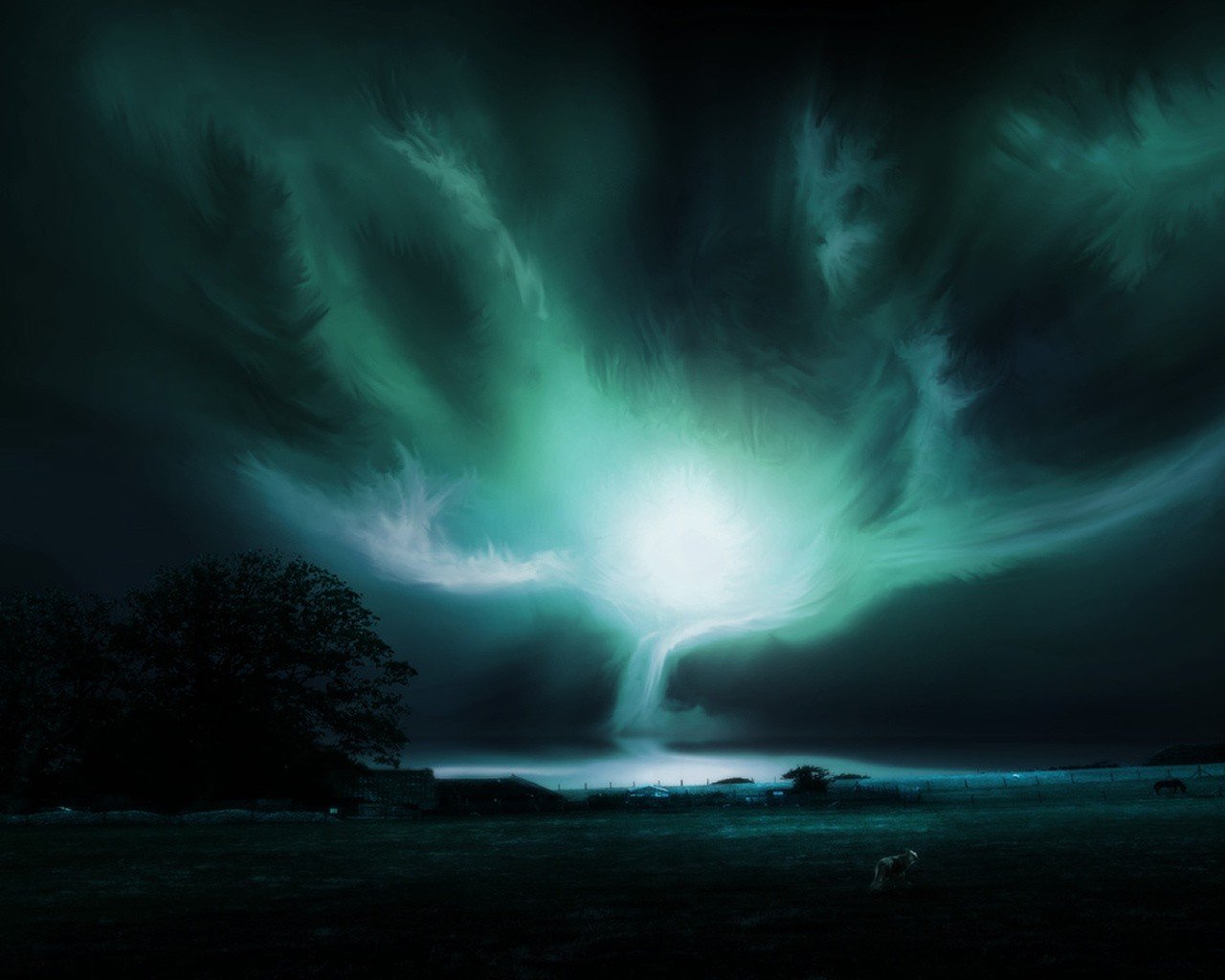 Drawing of a tree made of light