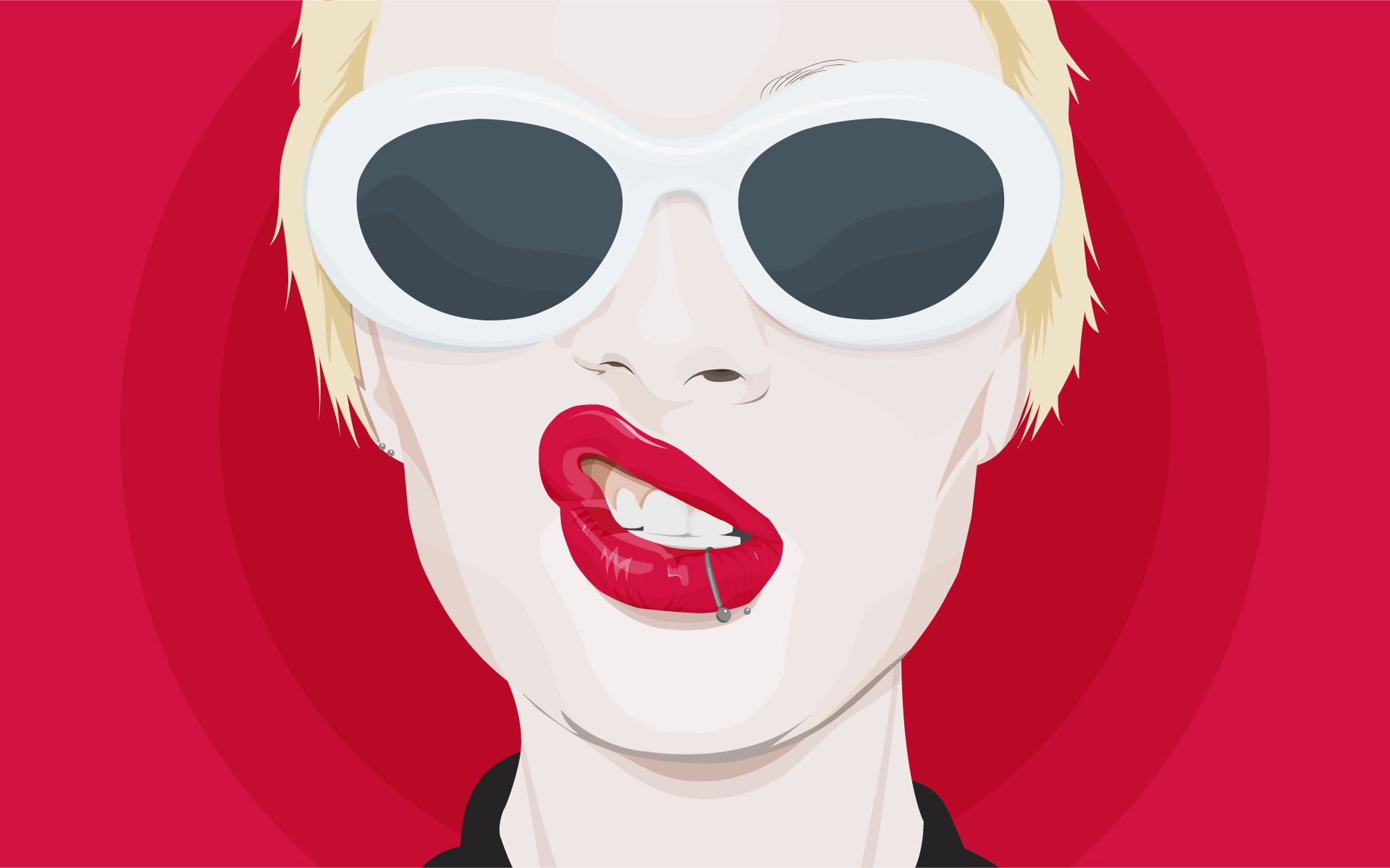 Brown-haired woman in a white bed and champagne eroticaBrown-haired woman in a white bed and champagne erotica