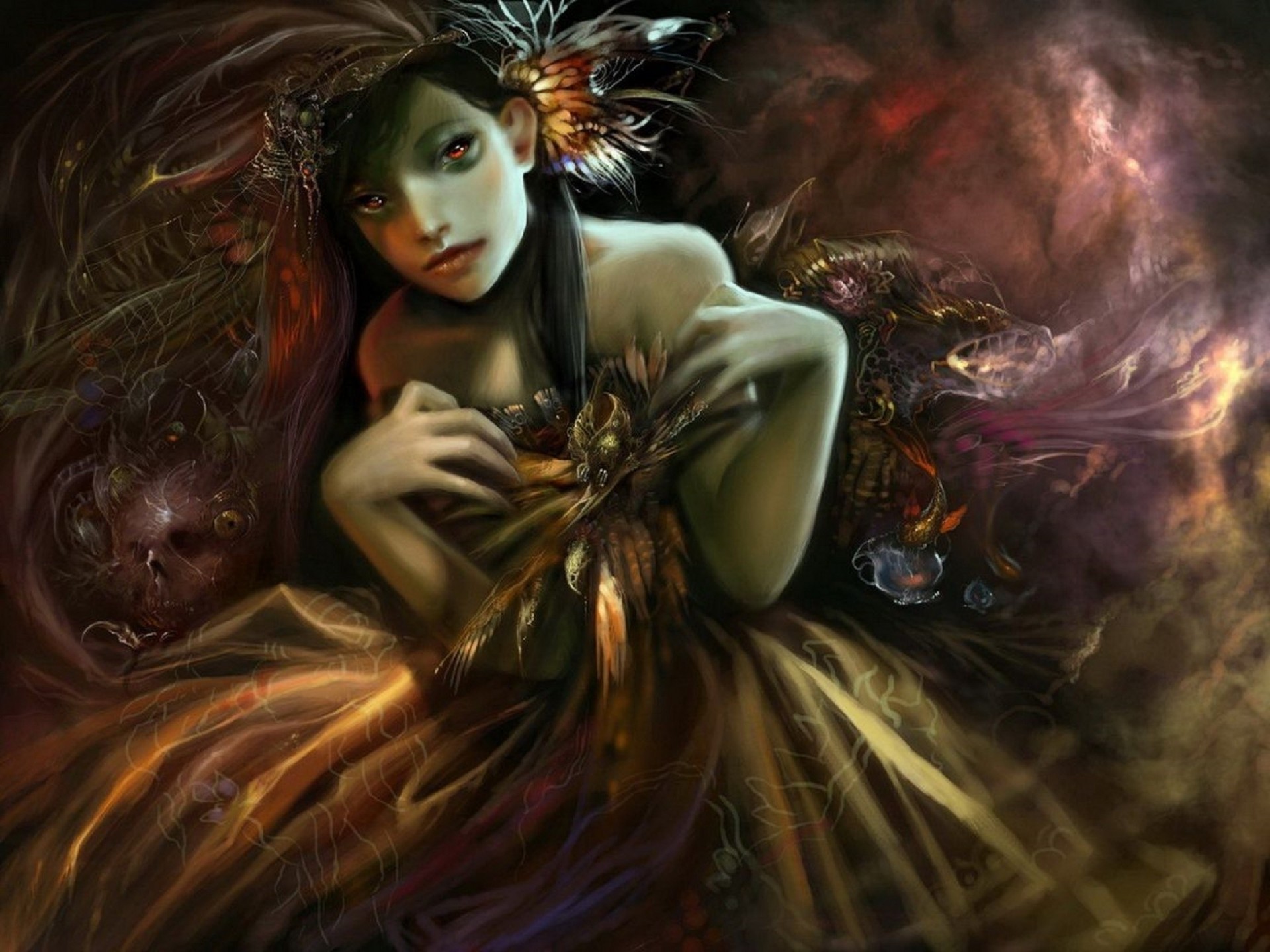 A painted witch flies to her castle against the background of the moonA painted witch flies to her castle against the background of the moon