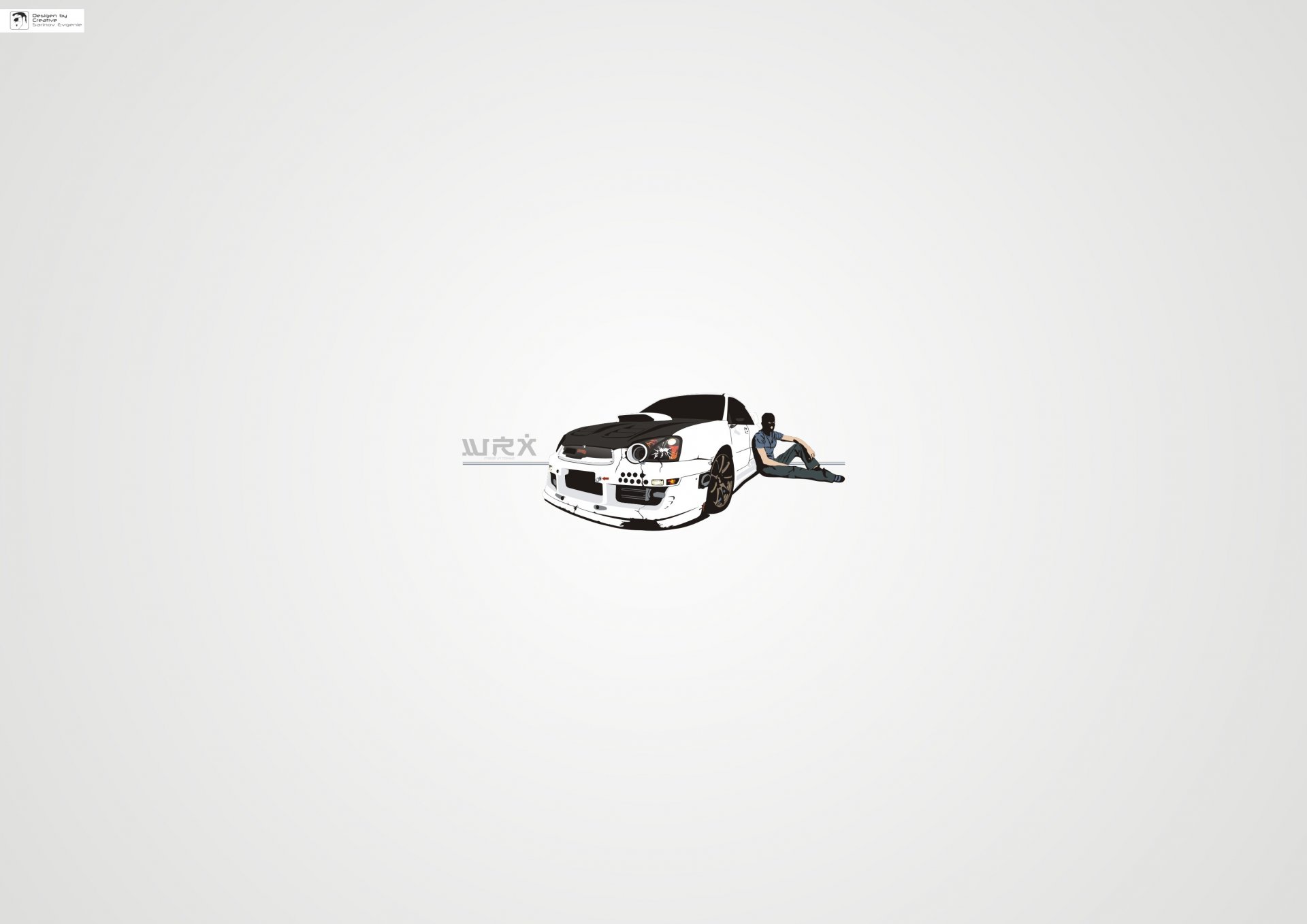 Girl in a swimsuit on the background of subaru and nissanGirl in a swimsuit on the background of Subaru and Nissan