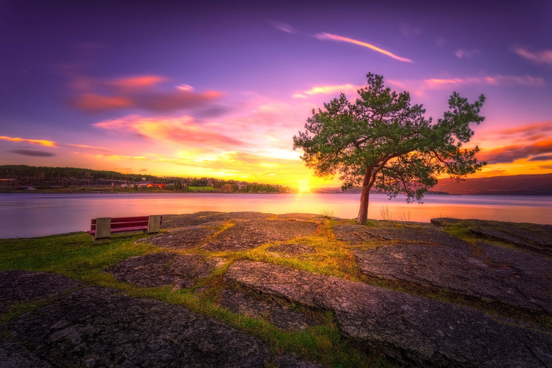 A lonely tree against the background of a bright sunsetA lonely tree against the background of a bright sunset