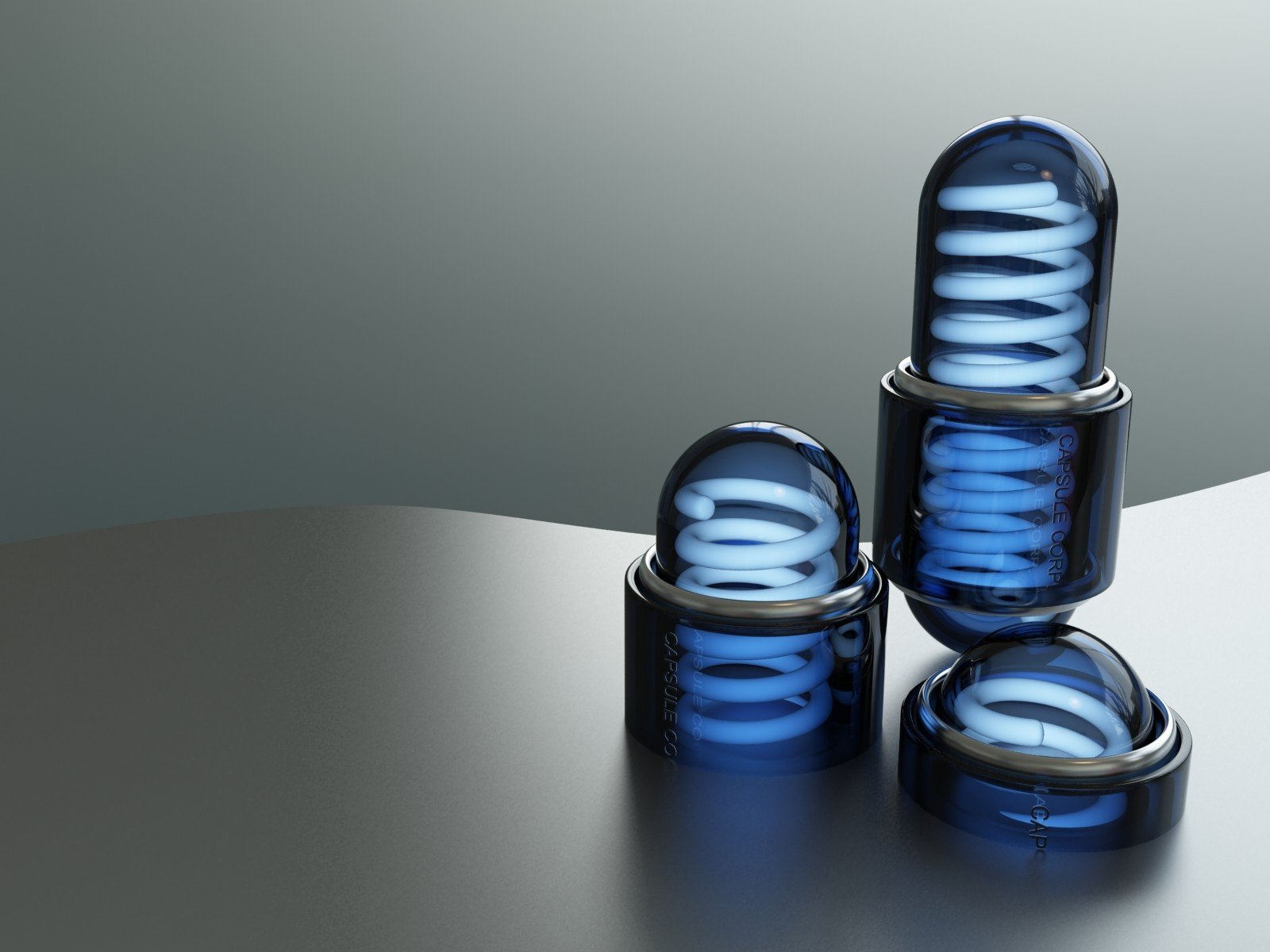 The white spiral inside the capsule emits blue lightThe white spiral inside the capsule emits blue light